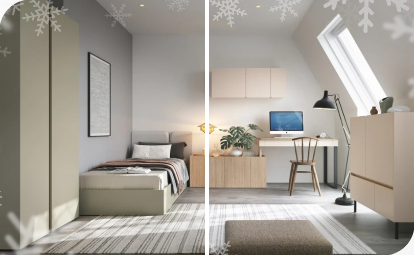 A karácsony az év legvarázslatosabb időszaka a gyerekek számára, ezért a gyerekszobának is karácsonyi hangulatot kell árasztania. Berendezéseinkkel egy kényelmes és játékos teret teremthetsz, ahol a gyerekek élvezhetik az ünnepeket. A stílusos gyerekágyak, kiegészítve karácsonyi motívumokkal díszített tematikus párnákkal és az ágy feletti lágy fénnyel, varázslatos teret teremtenek. A praktikus polcok vagy szekrények biztosítják, hogy minden új játék és ajándék gyorsan elférjen, így a gyerekek élvezhetik a rendet és a játékteret.