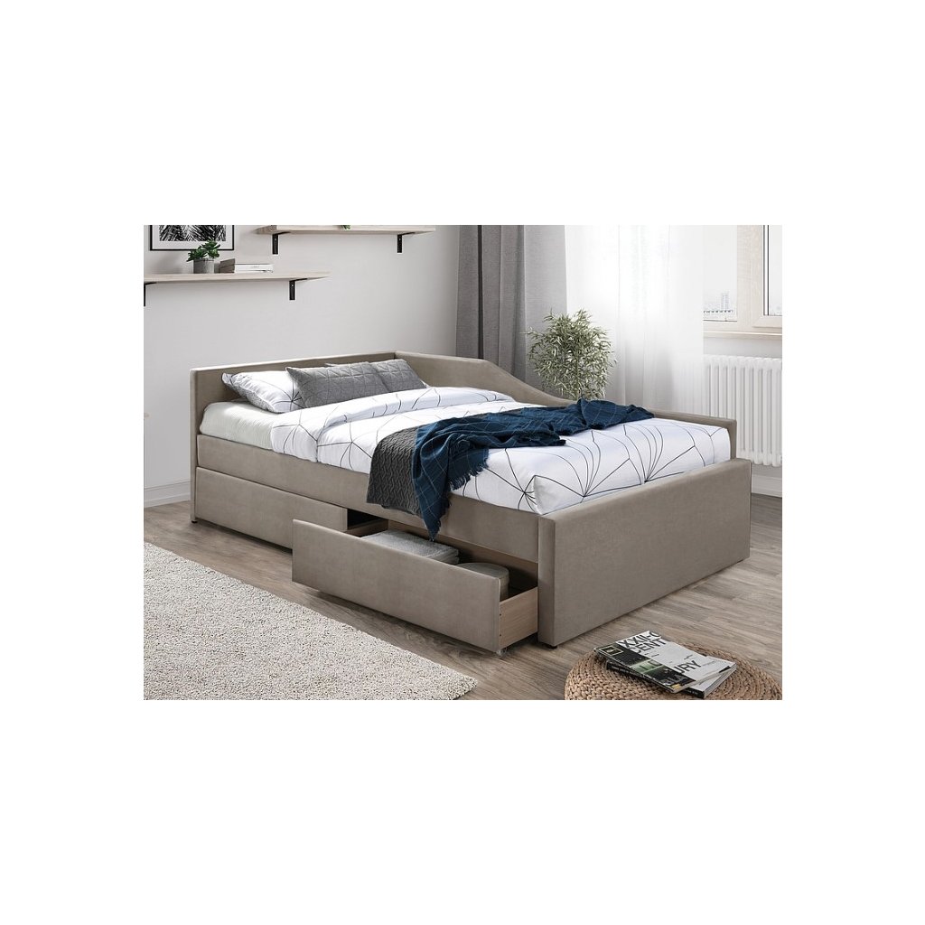 A kárpitozott, kiváló minőségű ELIOT Velvet egyszemélyes ágy bármely hálószobába vagy diákszobába illeszkedik. Az ágy teljes egészében kellemes bársony szövettel van bevonva , a népszerű bézs színben. Az ágy két tágas és praktikus fiókkal rendelkezik. A szerkezet kárpitozása olyan luxust ad az ágynak, amely elvarázsolja. A fejtámla a bal oldalon van, a másik oldalra beszerelés nem lehetséges. A matracot az ágy ára nem tartalmazza, széles matrac kínálatunkból választhat és rendelhet.