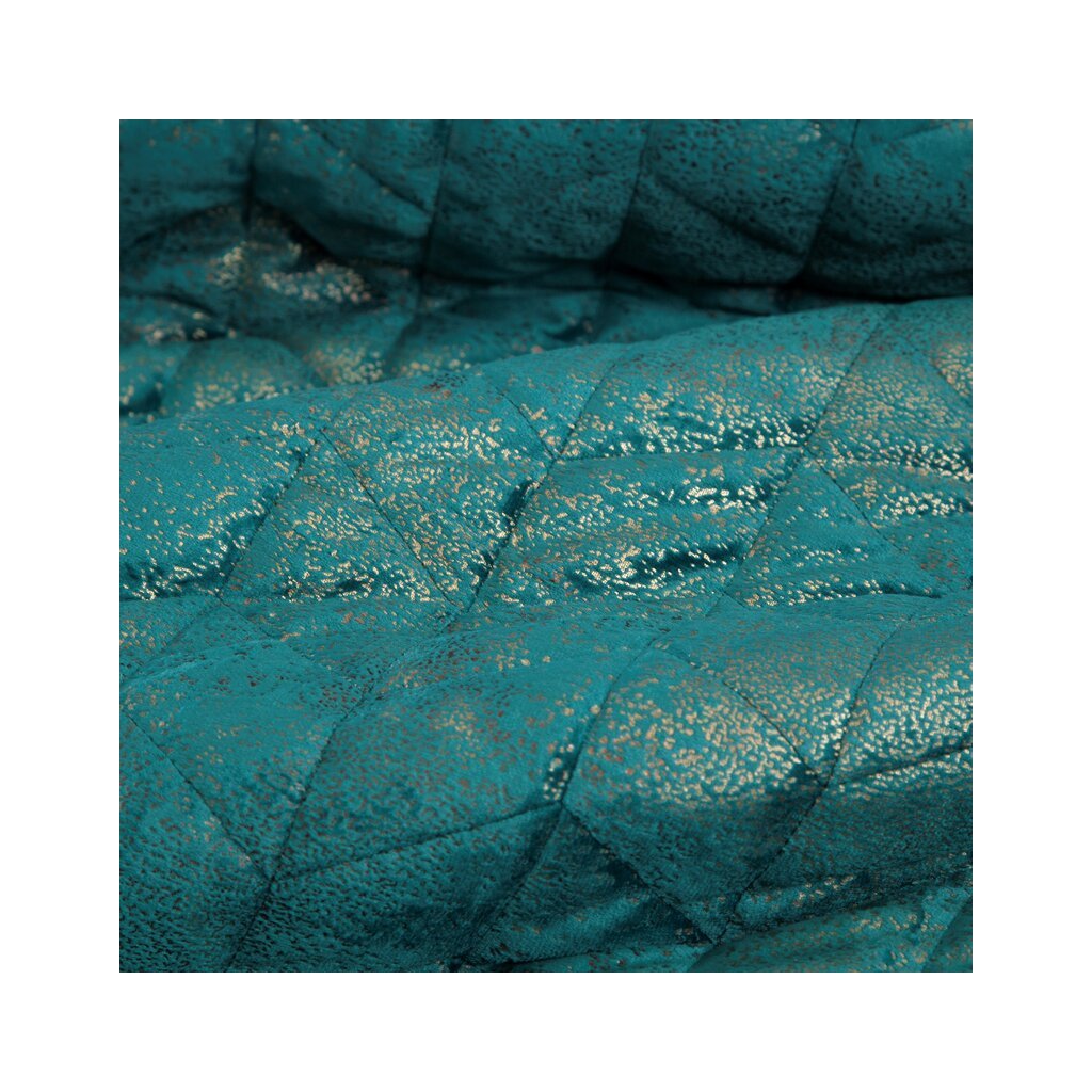 Arany dörzsöléssel varrott bársonyos ágytakaró szélesség: 170 cm, hossz: 210 cm, szín: türkiz, súly: 210+75+120 GSM, összetétel: Anyaga: 100% poliészter