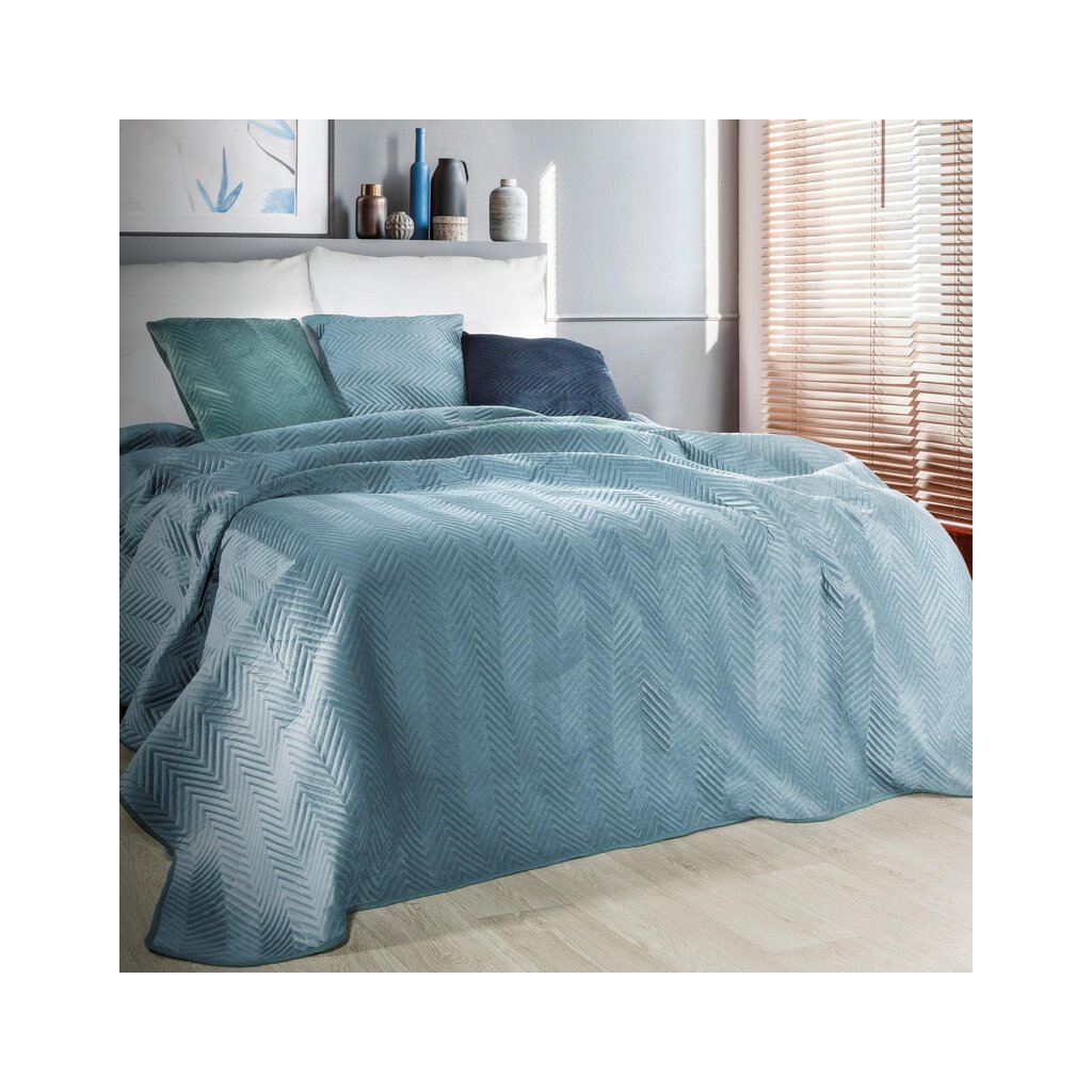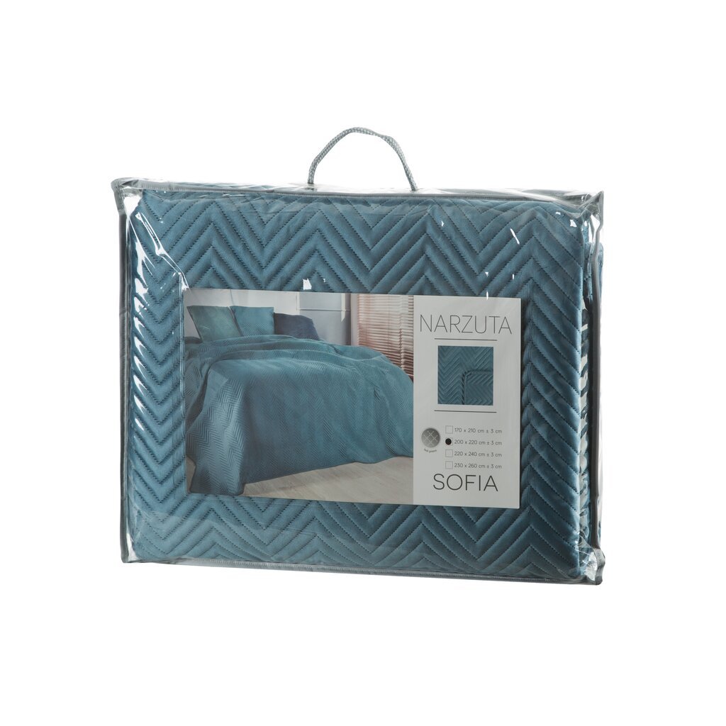 Exkluzív ágytakaró puha és kellemes tapintású bársonyból, nagy sűrű halszálkás mintával varrott. A varráshoz varrat nélküli melegsajtolásos módszert alkalmaztak. Szélesség: 230 cm, hossz: 260 cm, szín: kék, súly: 250+120+65 GSM, összetétel: Anyaga: 100% poliészter.Kiegészítő paraméterek