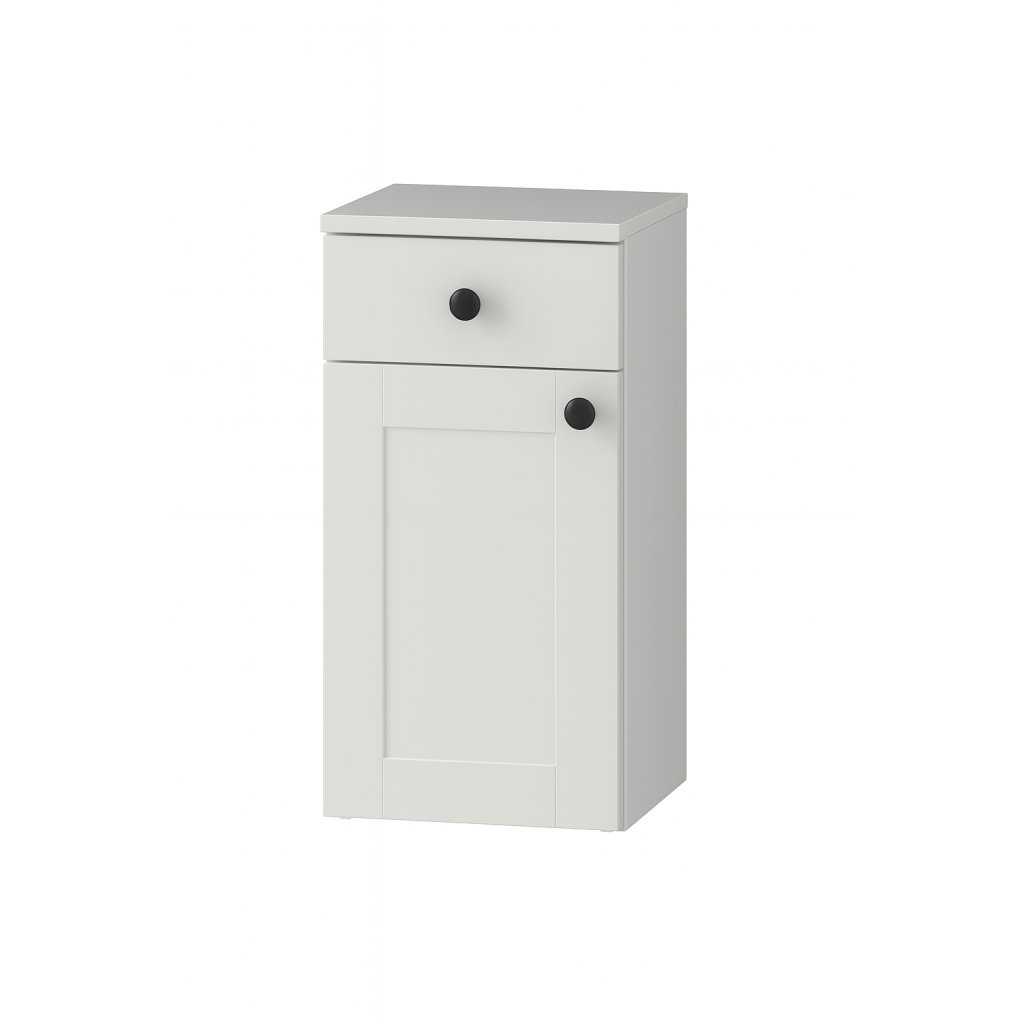 SENJA fürdőszoba szekrény gyönyörű fehér kivitelben . Ezek a készlet jellegzetes jellemzői egyedi fogantyúk gombok formájában és elegáns színvilággal. A SENJA D30 S/1 alacsony fürdőszobai szekrény egy ajtóval és egy fiókkal rendelkezik, bőséges tárolóhellyel.