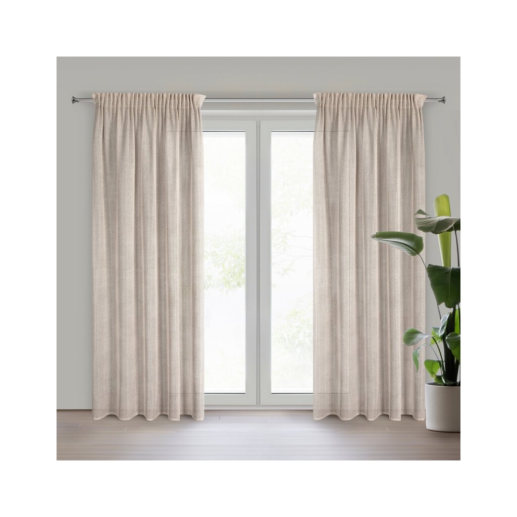 Hálós szövetből készült kész függöny szélesség: 140 cm, hossz: 270 cm, szín: bézs, súly: 170 GSM, összetétel: Anyaga: 100% poliészter
