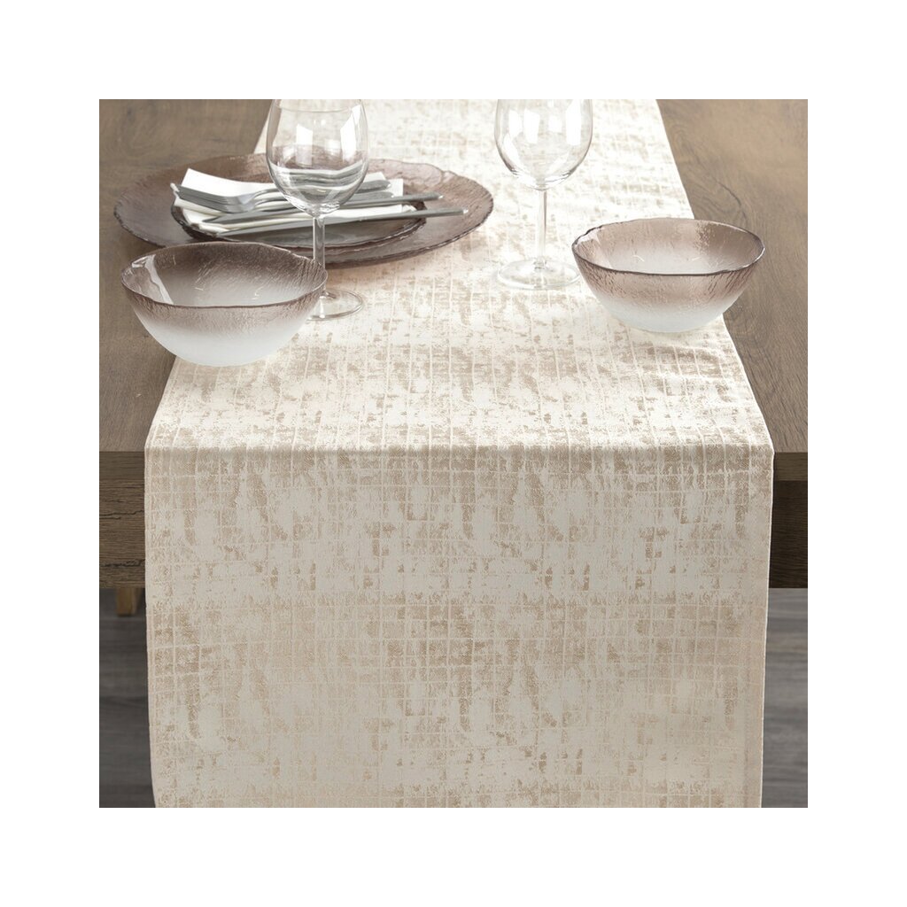 Jacquard mintás futószalag szélessége: 40 cm, hossza: 140 cm, színe: bézs, súlya: 195 GSM, összetétele: Anyaga: 100% poliészterKiegészítő paraméterek