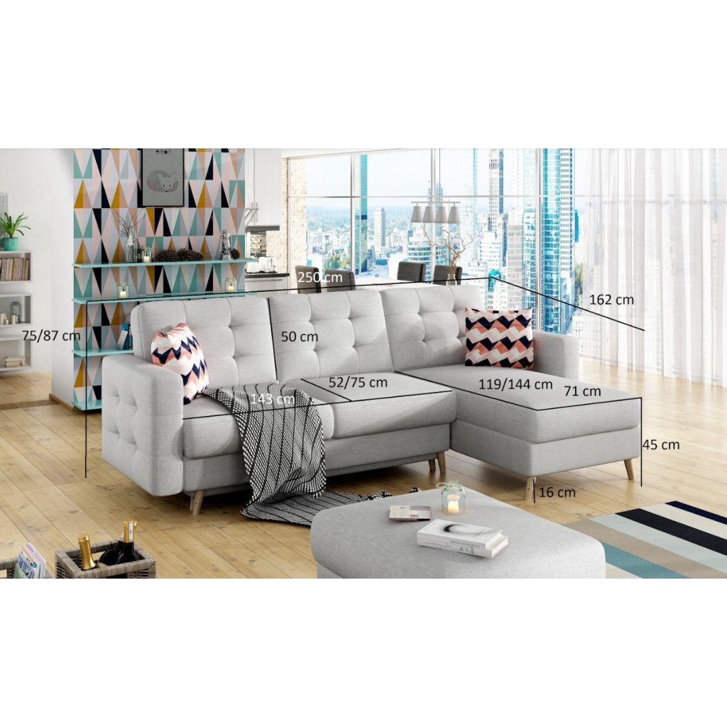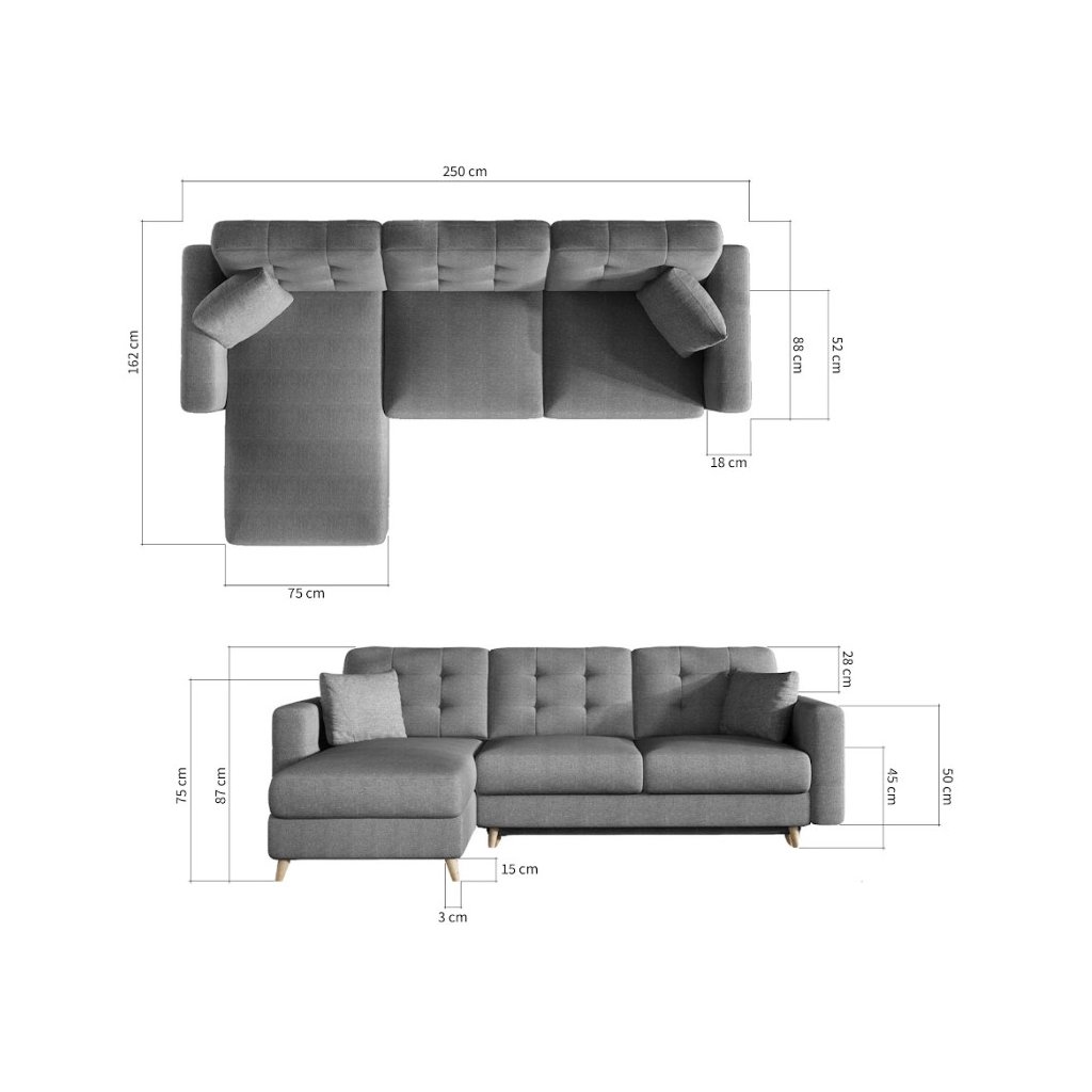 Varázsolja vonzóvá nappaliját az ASGARD L dizájner kanapégarnitúrával . A magasabb falábaknak köszönhetően a kanapé szerkezete könnyűnek tűnik, mégis stabilitását nem veszíti el. A rendkívüli kialakítás szemet gyönyörködtető varrást kölcsönöz a háttámlának , a kárpitozott háttámlának köszönhetően pedig a térbe is illik. Nagy előnye a tárolóhely és az, hogy ággyá is összecsukható, a DL automata mechanizmusnak köszönhetően mechanikusan könnyen nyitható, és könnyen kialakítható benne akár 120 x 210 cm-es alvóhely . Varázsoljon harmonikus és összehangolt egésszé nappaliját az eredeti ASGARD L kanapéval . Az ASGARD lábtartó kiegészítőként rendelhető a kanapégarnitúrához.