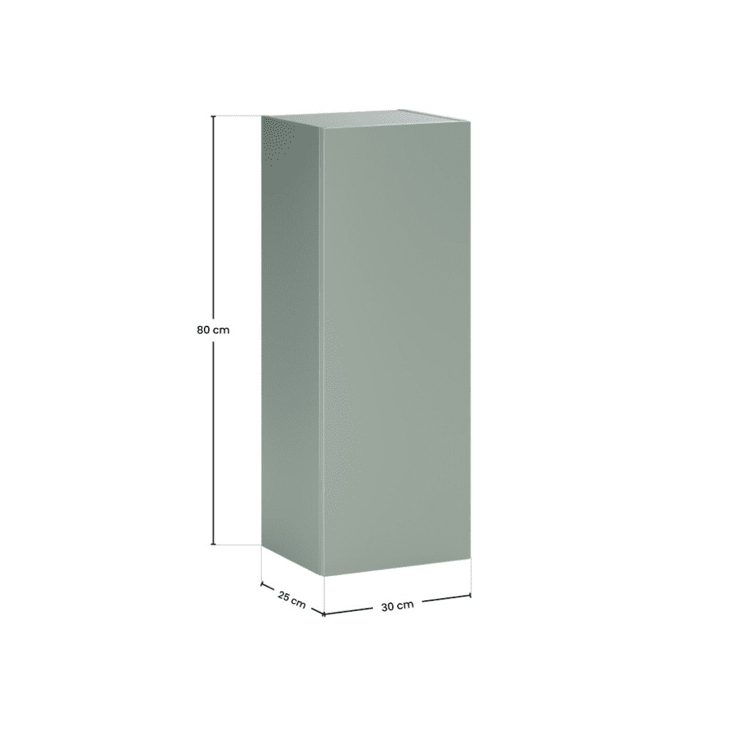 Tegye teljessé fürdőszobáját egy praktikus és dizájntudatos elemmel. Az ASTER Green 80-30-1D fali szekrény modern zöld árnyalatban az esztétika, a tárolóhely és a helytakarékosság ideális kombinációját kínálja. Függőleges kialakításának köszönhetően a szekrény kisebb fürdőszobákba is ideális, ahol fontos minden centiméter hatékony kihasználása. Az egyajtós kialakítás elegendő helyet kínál törölközők, kozmetikumok vagy tisztítószerek tárolására, miközben minden áttekinthető és rejtett marad. A minimalista szettak és a NYITÓS nyitás kiemelik a bútor modern jellegét. A felületkezelést úgy tervezték, hogy ellenálljon a nedvességnek és a fürdőszobai környezetben való mindennapi használatnak.