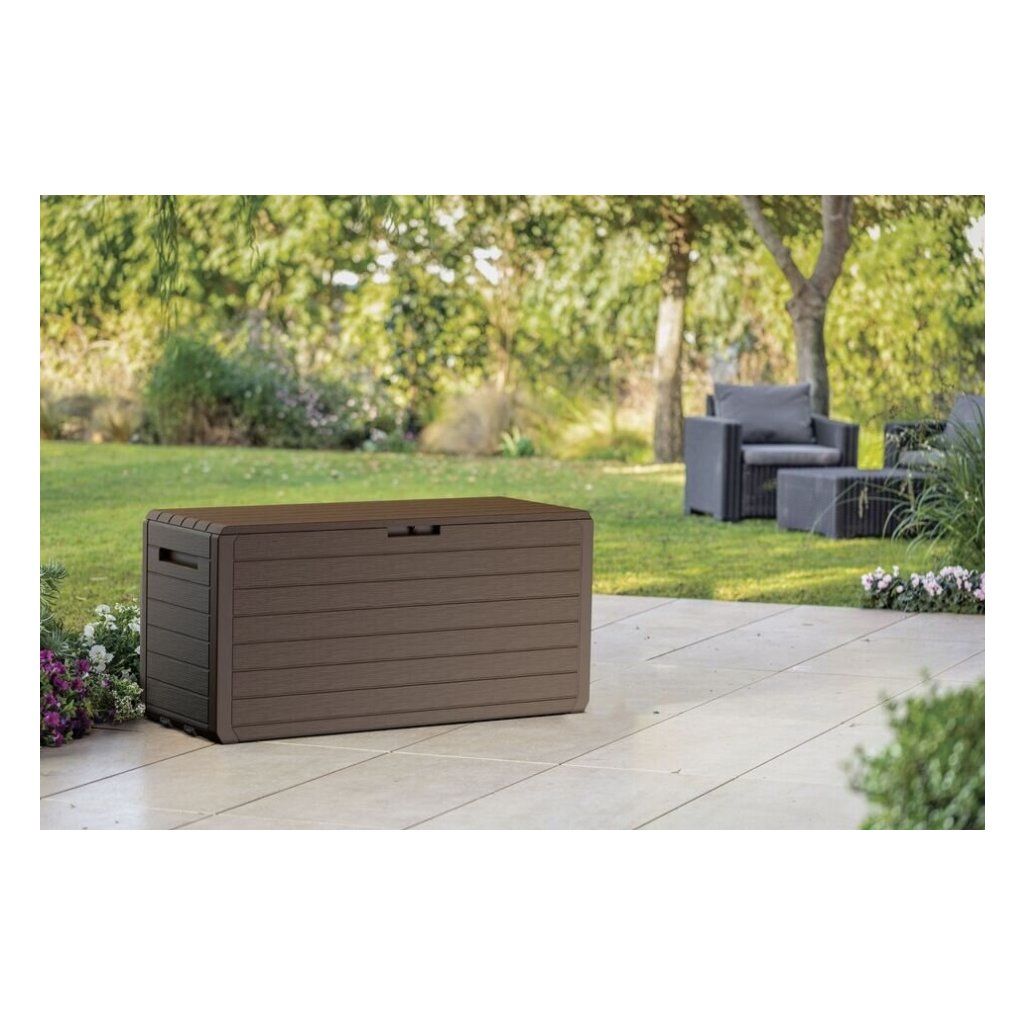Az ATALAS barna színű, 270 literes űrtartalmú tárolódoboz nagyszerű megoldás mindazok számára, akik rendben szeretnék tartani kertjüket vagy teraszukat . Kompakt méreteinek köszönhetően a doboz kisebb helyiségekbe is alkalmas, miközben elegendő helyet kínál különféle tárgyak tárolására, a kerti szerszámoktól kezdve a játékokon át a párnákig.