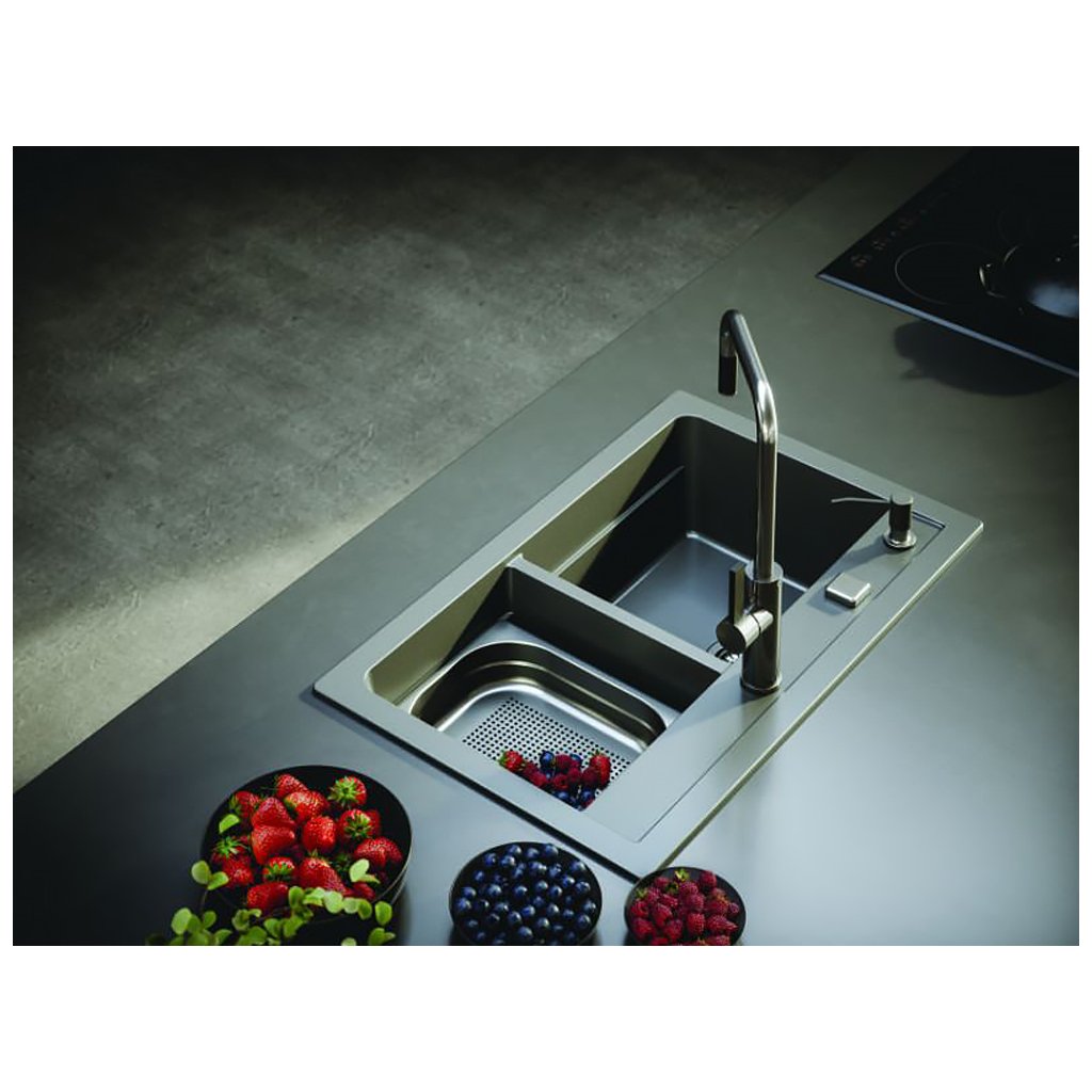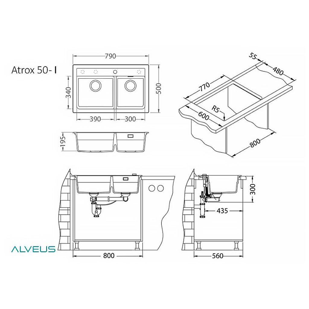 Az Atrox 50 egy gránit dupla mosogató excenterrel. A mosogatót minimum 80 cm széles szekrénybe, munkalapra szerelve történő beépítésre tervezték. Önnek csak széles színválasztékunkból kell választania.