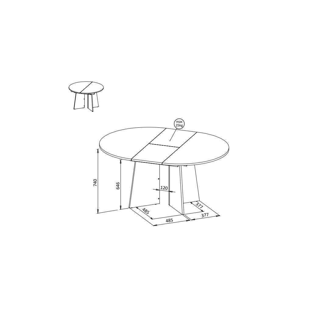 - Szé x Ma x Mé étkezőasztal AU9: 120 - 160 x 76,2 x 120 cm