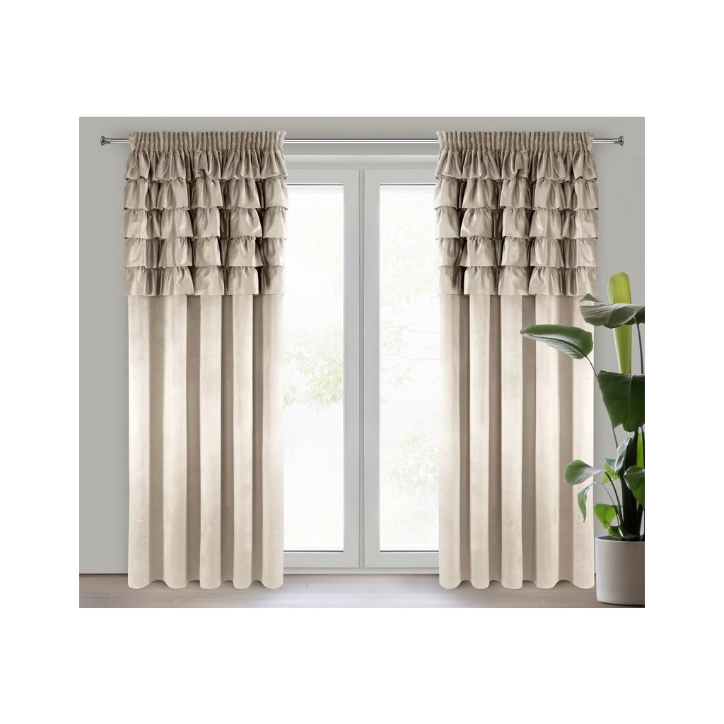 Kész bársonyfüggöny felülről fodrokkal, szélesség: 140 cm, hossz: 270 cm, szín: bézs, súly: 200 GSM, összetétel: Anyaga: 100% poliészter