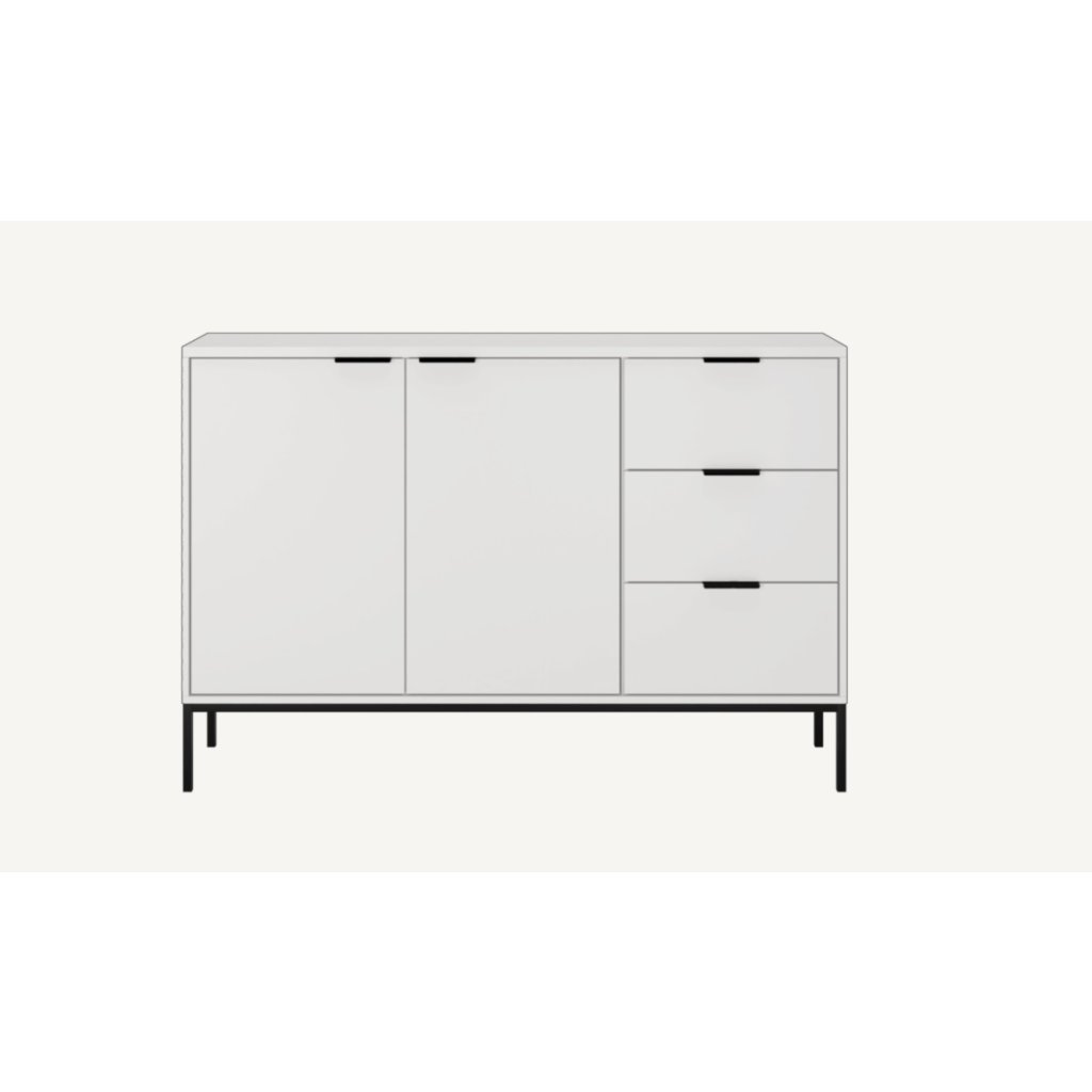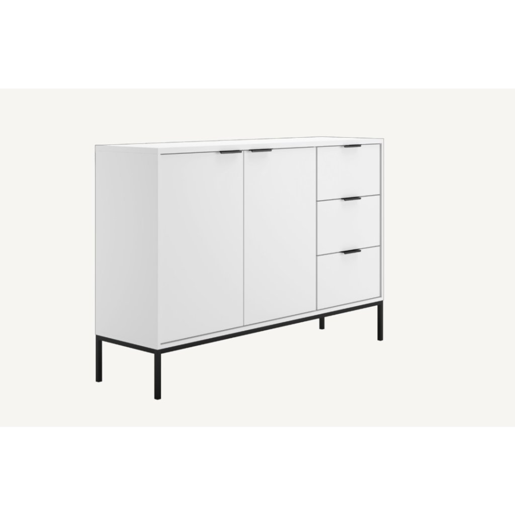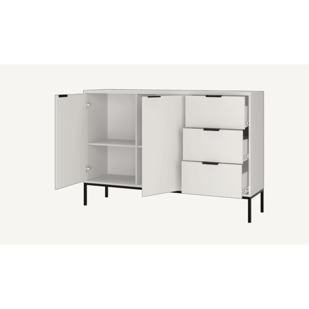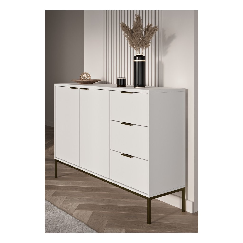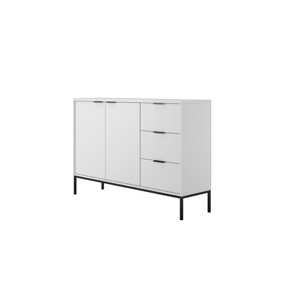 Tegyen egy csipetnyi eleganciát otthonába az AUSTIN fiókos komóddal, modern fekete-fehér dizájnjával . Ez a stílusos darab a letisztult minimalista dizájnt ötvözi a magas funkcionalitással, így ideális kiegészítője lehet bármely otthonnak. A fiókos komód három tágas fiókkal és két zárható, állítható polcokkal ellátott szekrénykével rendelkezik, amelyek rengeteg helyet biztosítanak ruhák, kiegészítők vagy egyéb szükséges dolgok számára. A fiókok klasszikus sínekkel vannak felszerelve, lágyan záródó rendszer nélkül.