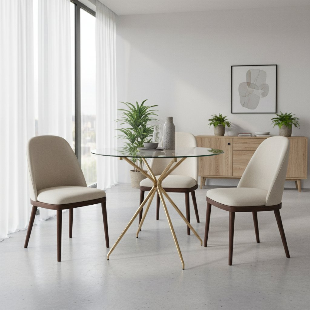 Az ízléses Azalia étkezőasztal , amely minden modern teret felpezsdít. Az étkezőasztal edzett átlátszó üvegből készült. Az Azalia asztal kerete arany színnel élénkült. Tehát ne habozzon tovább, és kényeztesse magát egyediséggel és időtlenséggel az AZALIA étkezőasztal formájában.