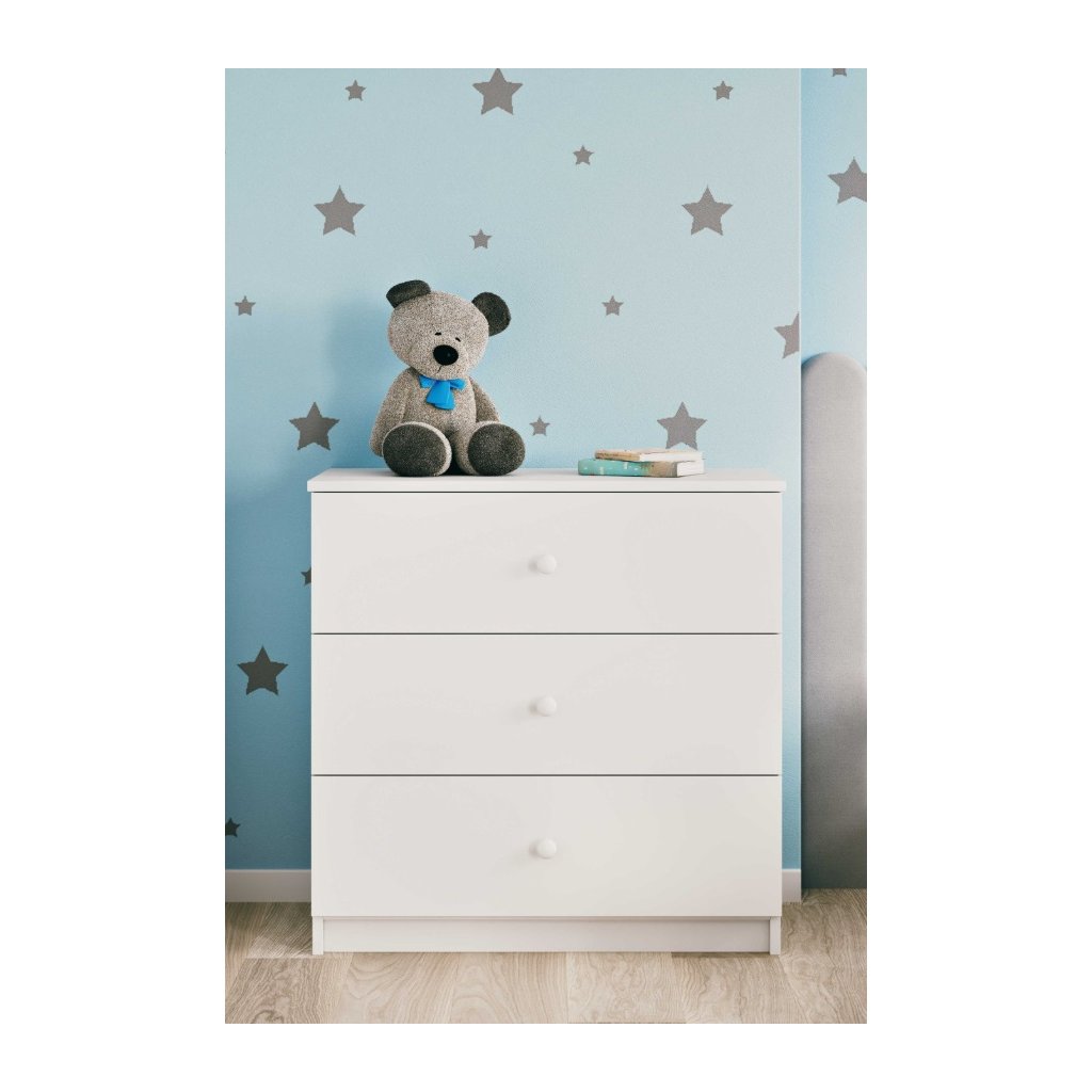 A BABYDREAMS komódot a modern, mégis univerzális stílust kedvelő kisebb gyermekek számára tervezték. Az időtlen fehér felület mindig elegánsnak tűnik, és könnyen kombinálható bármilyen enteriőrrel. Univerzális kialakításának köszönhetően a bútor illik egy színes, játékos szobába , de egy egyszerűbb, minimalista térben is kiemelkedik. Az egész szett stílusa érdekes módon ötvözi a modernitást a hagyományos elemek finom csipetnyi hatásával , harmonikus és otthonos környezetet teremtve gyermeke számára. A komód három tágas fiókkal rendelkezik.