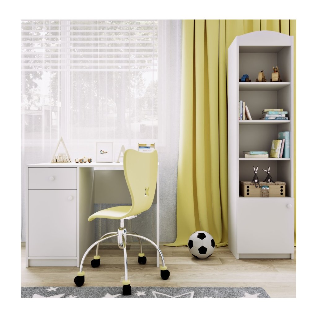 A BABYDREAMS íróasztalt a modern, mégis sokoldalú stílust kedvelő kisebb gyermekek számára tervezték. Az időtlen fehér felület mindig elegánsnak tűnik, és könnyen kombinálható bármilyen enteriőrrel. Sokoldalú kialakításának köszönhetően a bútor illik egy színes, játékos szobába , de egy egyszerűbb, minimalista térben is kiemelkedik. Az egész garnitúra stílusa érdekes módon ötvözi a modernitást a hagyományos elemek finom csipetnyi hatásával , harmonikus és otthonos környezetet teremtve gyermeke számára. Az íróasztal egy ajtóval és egy praktikus fiókkal rendelkezik.
