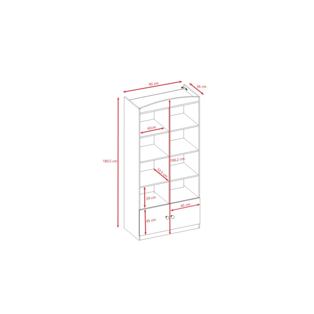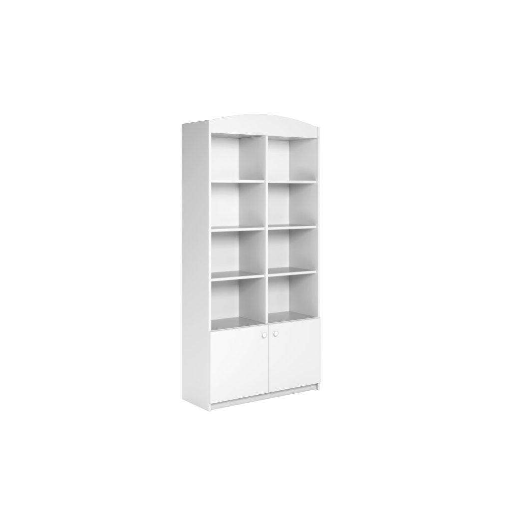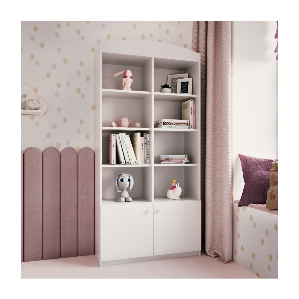 A BABYDREAMS könyvespolcot a modern, mégis univerzális stílust kedvelő kisebb gyermekek számára tervezték. Az időtlen fehér felület mindig elegánsnak tűnik, és könnyen kombinálható bármilyen enteriőrrel. Univerzális kialakításának köszönhetően a bútor illik egy színes, játékos szobába , de egy egyszerűbb, minimalista térben is kiemelkedik. A teljes szett stílusa érdekes módon ötvözi a modernitást a hagyományos elemek finom csipetnyi elemeivel , harmonikus és otthonos környezetet teremtve gyermeke számára. A könyvespolc magas, polcokkal és ajtókkal.