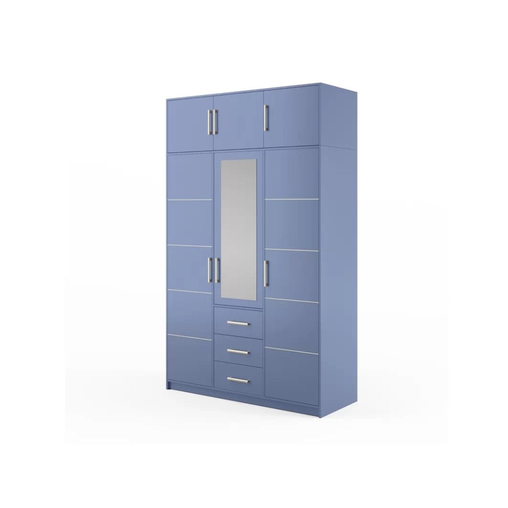 Praktikus gardróbbővítés BALI D4 ban klasszikus kék színű kivitel. Kiterjesztés rengeteg tárolóhelyet kínálnak. Fogantyúk Arany színben pompáznak, friss színekkel kombinálva, vidámságot visznek a berendezésbe. A bővítmény segítségével kitöltheted a teret, amit egyedileg használhatsz, például szezonális ruháknak.