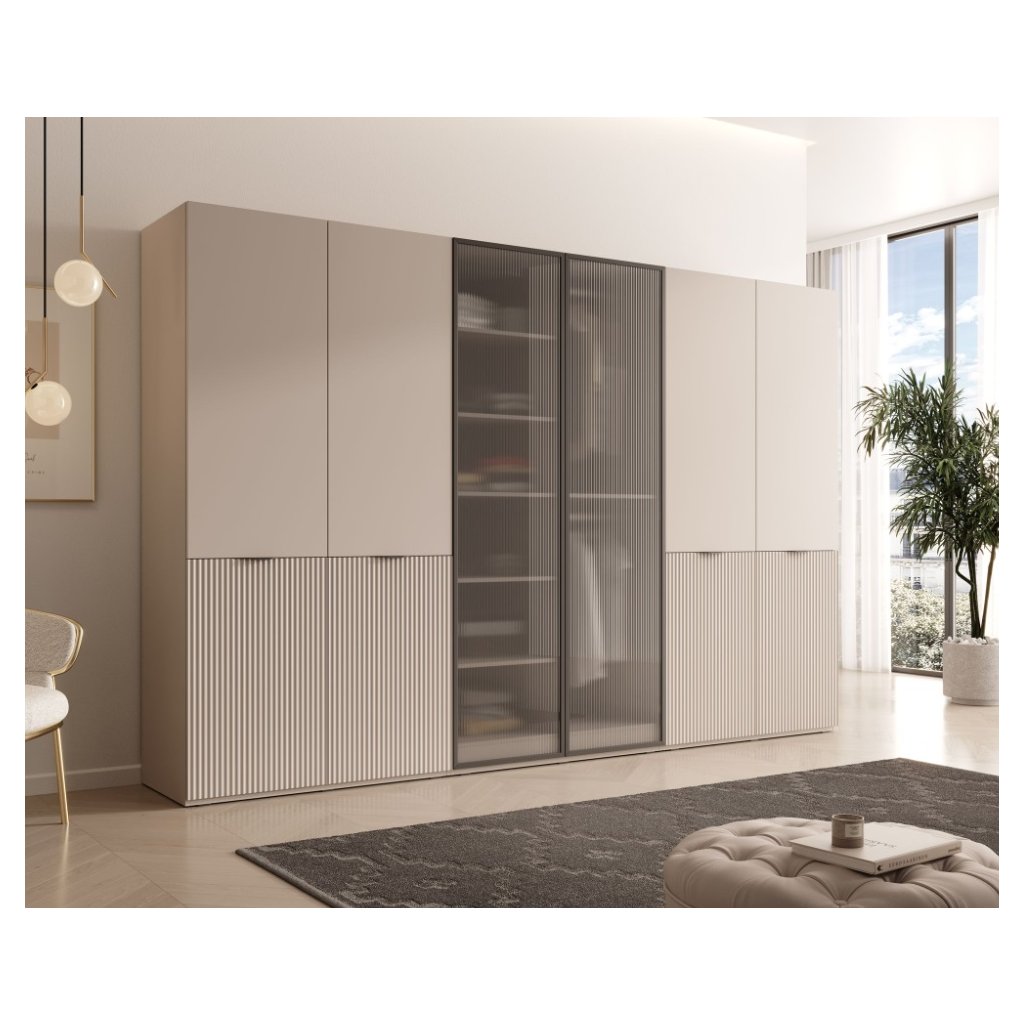 A modern, moduláris kialakítású FLEXON gardrób lehetővé teszi a tárolóhely testreszabását az igényei és a szoba méretei szerint. Kasmír színében bármilyen belső térbe illeszkedik. A gardrób belső elrendezése lehetővé teszi négy további polc hozzáadását, ami maximális átláthatóságot biztosít.