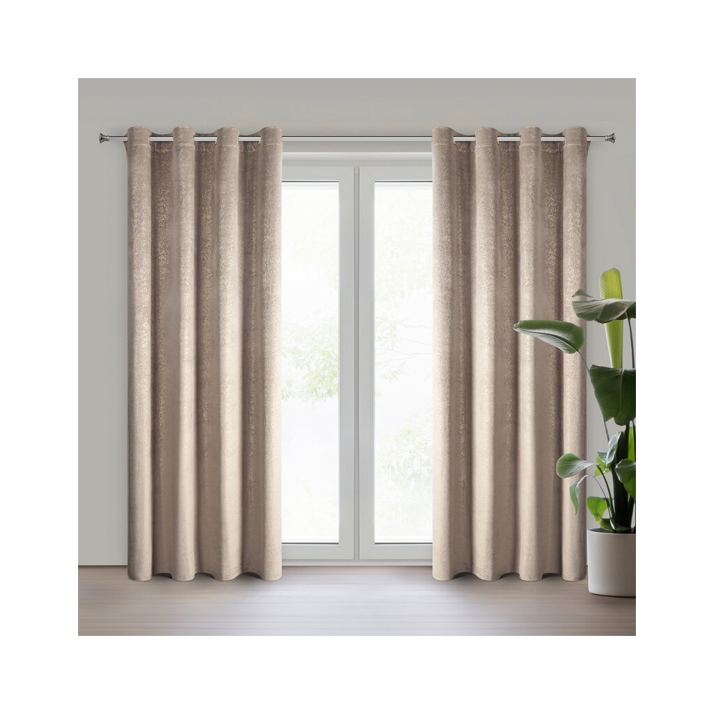 Bársony függöny fényes mintával Szélesség: 135 cm, Hossz: 250 cm, Szín: barna, Súly: 200 GSM, Összetétel: Anyag: 100% poliészter