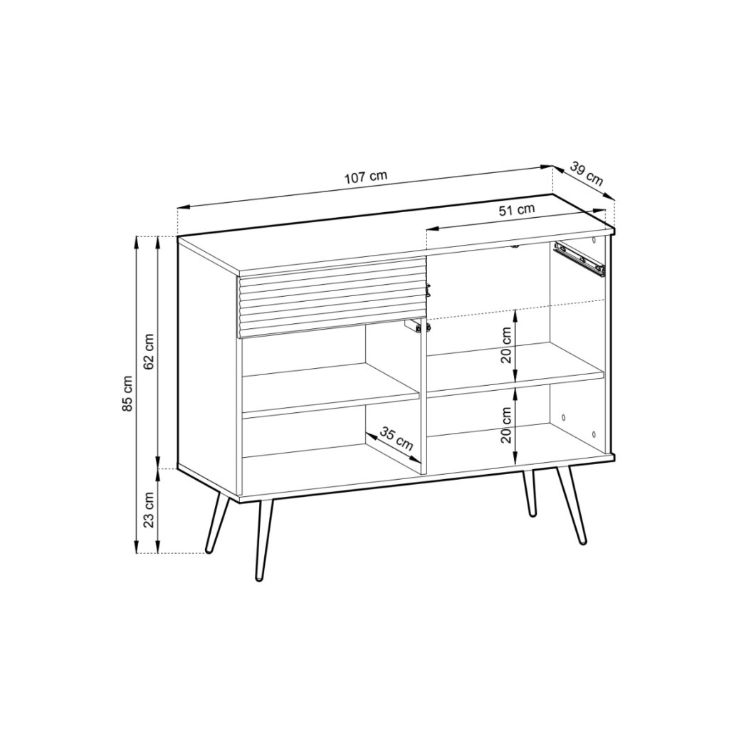 A BIJOU fiókos szekrény kiváló minőségű anyagokból, MDF-fel kombinálva készült, ami garantálja a hosszú élettartamot és tartósságot. A stabilitást a masszív, magas lábak biztosítják, amelyek lehetővé teszik a robotporszívó kényelmes használatát is. A praktikus és stílusos nyitás teszi teljessé a bútor modern megjelenését. A bútor felülete könnyen karbantartható, ami megkönnyíti a tisztítást , és időt és költséget takarít meg a napi ápolással kapcsolatban.