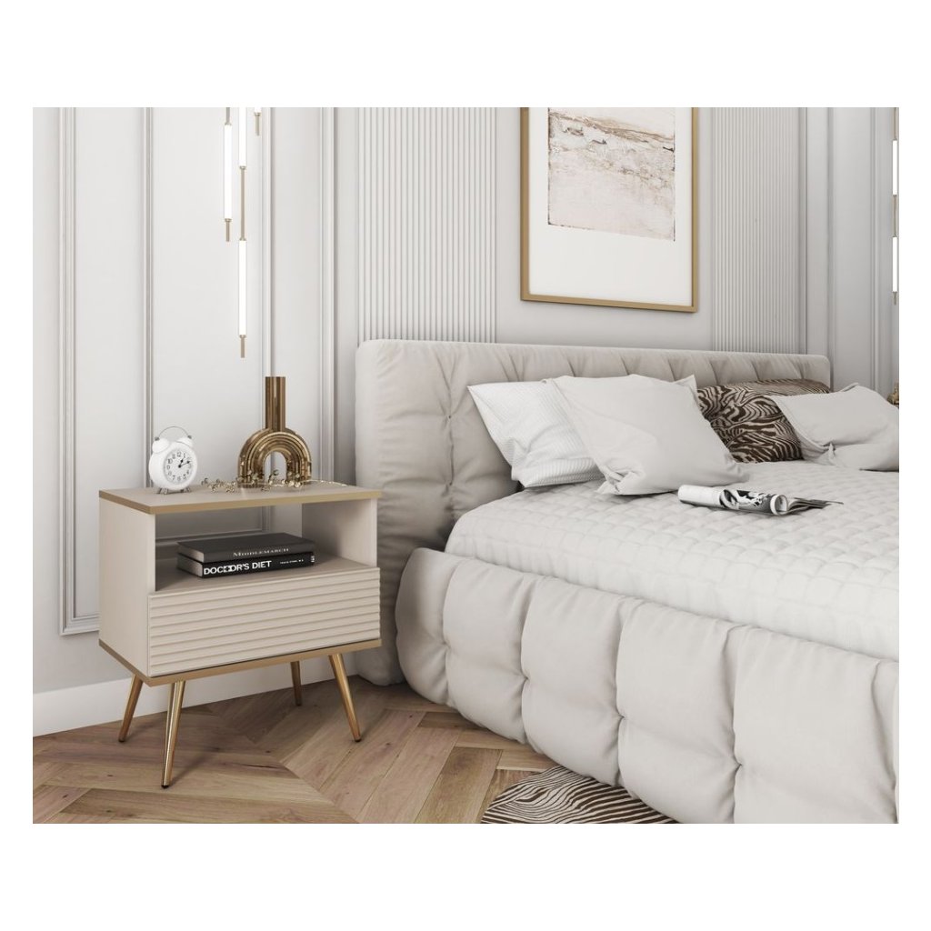 BIJOU S-54 MDF éjjeliszekrény | bézs / arany lábak