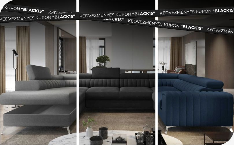 Használja ki a Black Friday-t a BLACK15 kóddal, és gazdagítsa otthonát minőségi bútorokkal 15% kedvezménnyel, verhetetlen áron. Széles kínálatunkból és remek árainkból biztosan megtalálja, amire az enteriőrjének szüksége van. Ne hagyja ki a spórolás és a megújulás lehetőségét! Webáruházunkban a vásárlás egyszerű és kényelmes: rendeljen otthonról, mi pedig gondoskodunk a gyors házhozszállításról. A kódot a rendelés első lépésében, a KEDVEZMÉNYKÓD MEGADÁSA résznél kell beírni. Az akció 2025.11.11 – 2025.11.19. között érvényes.