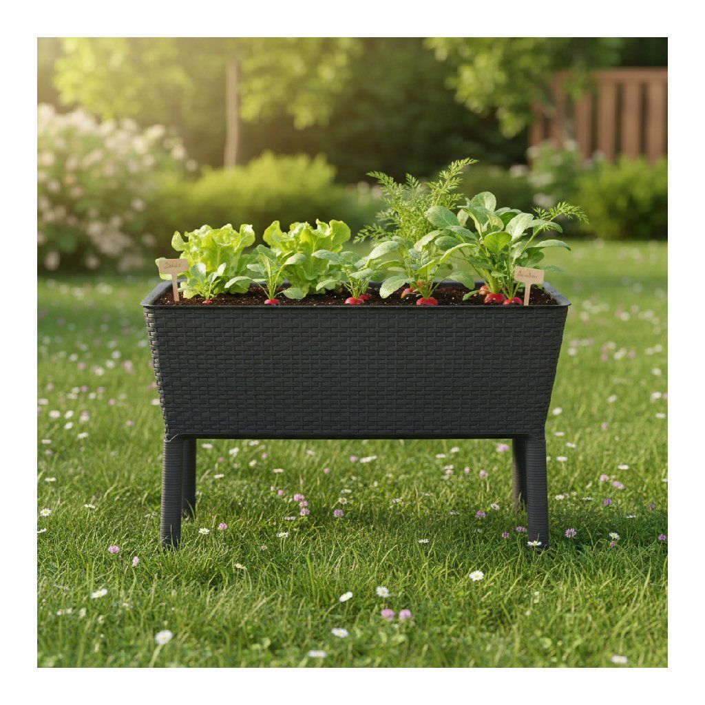 BLOOFULL virágcserép | A grafit prémium rattan megjelenésű anyagból készül, amely ellenáll a kedvezőtlen időjárási viszonyoknak, például az esőnek és az UV-sugárzásnak. Kiemelkedik az egyszerű karbantartásban és tisztításban , ami időt és energiát takarít meg.
