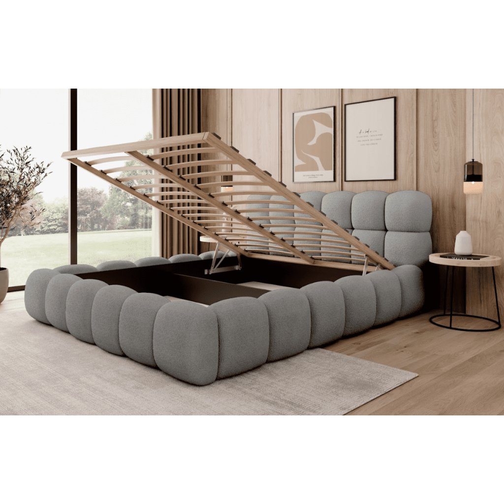 Fedezze fel a kényelem, a modern dizájn és a praktikus funkcionalitás tökéletes kombinációját . A BOSTON kárpitozott ágy egy kivételes bútordarab, amely azonnal magára vonzza a tekintetet bolyhos „buborék” steppelésével és időtlen megjelenésével. Ideális választás azok számára, akik prémium jelleget szeretnének adni hálószobájuknak, ugyanakkor maximális kényelmet szeretnének . A lágy, lekerekített formák és az ikonikus steppelések teszik ezt az ágyat a belső tér domináns elemévé. Egyszerre luxus, elegáns és kényelmes megjelenésű . Az ágy összecsukható rácsos ágyrésszel rendelkezik, amely bőséges tárolóhelyet kínál – ideális paplanok, párnák vagy szezonális holmik számára. A nyitás egyszerű és sima, így a kezelés teljesen könnyed. Az ágy összecsukható rácsos ágyrésszel rendelkezik, a matracot külön kell megrendelni .