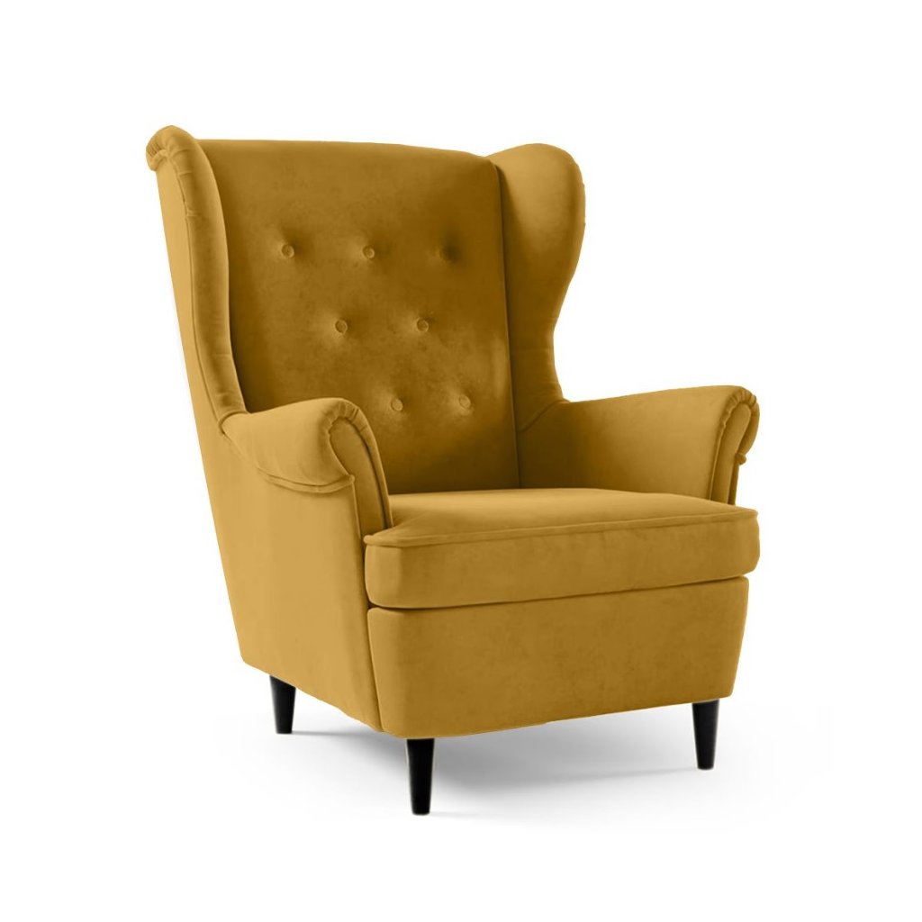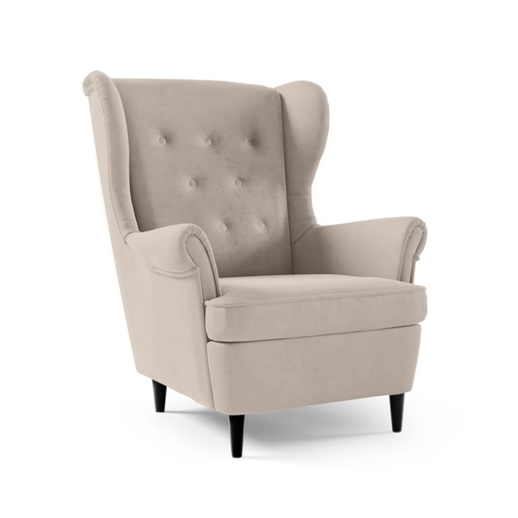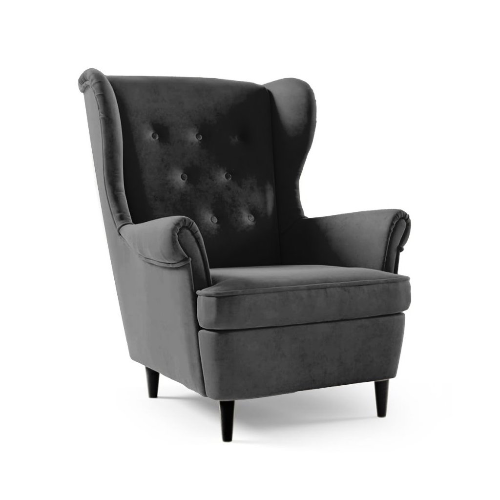 A fekete fa lábakkal ellátott karosszék elegáns és kényelmes kiegészítője lehet bármely belső térnek. Puha bársonyhuzattal van kárpitozva, amely luxus érzetet és kellemes tapintást biztosít. Az ülőfelület hullámrugóval van ellátva, amely magas kényelmet és tartást biztosít ülés közben. A karosszék impregnálható , vagy szükség esetén univerzális tisztítószerrel tisztítható.