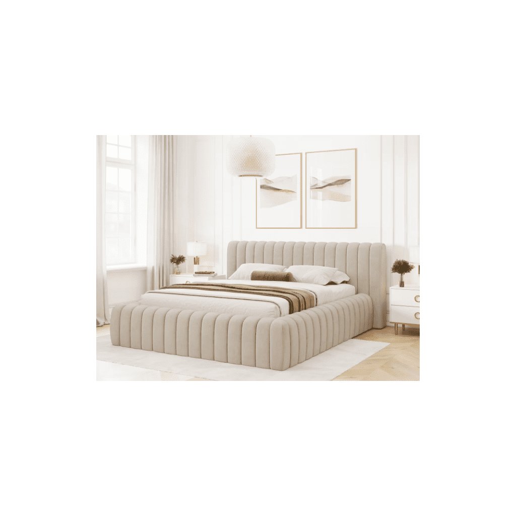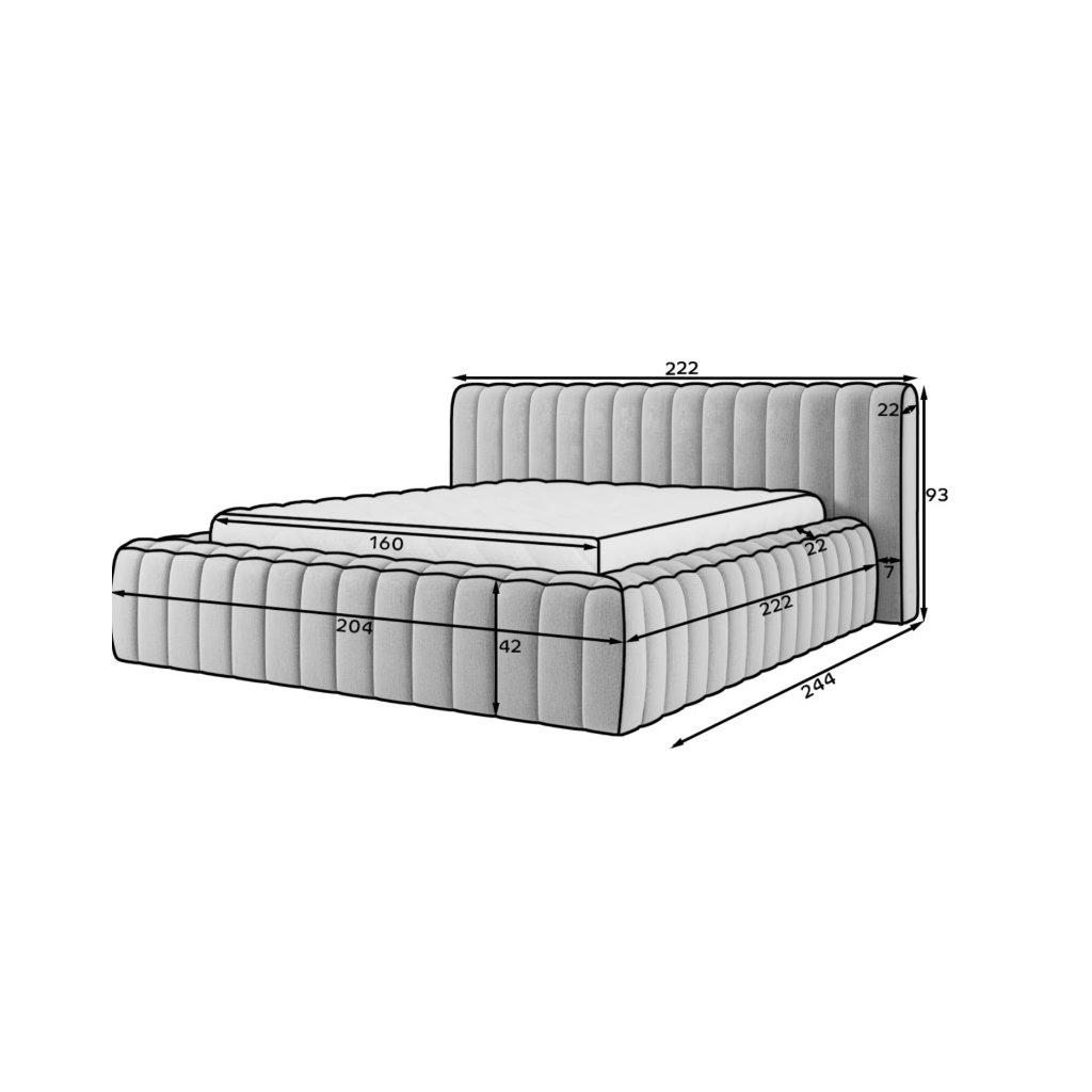 Változtasd át hálószobádat a kényelem és a stílus oázisává a luxus CARILLA kárpitozott ággyal, amely összecsukható léces alapon működik . A puha, ívelt kárpitozás, az elegáns szettak és a praktikus tárolóhely ideális választássá teszi ezt az ágyat az igényes vendégek számára. Az ágy puha, különböző színű szövettel van kárpitozva, amely tökéletesen illeszkedik a modern belső térbe. Az ágy fokozza az egész szoba megjelenését, és egyúttal praktikus megoldást kínál a tárolóhely tekintetében is. A magas fejtámla kényelmes támaszt nyújt olvasás vagy pihenés közben. Az integrált összecsukható léces alap könnyű hozzáférést biztosít a matrac alatti tágas tárolóhelyhez. A matracot külön kell megrendelni, nem része a csomagnak.