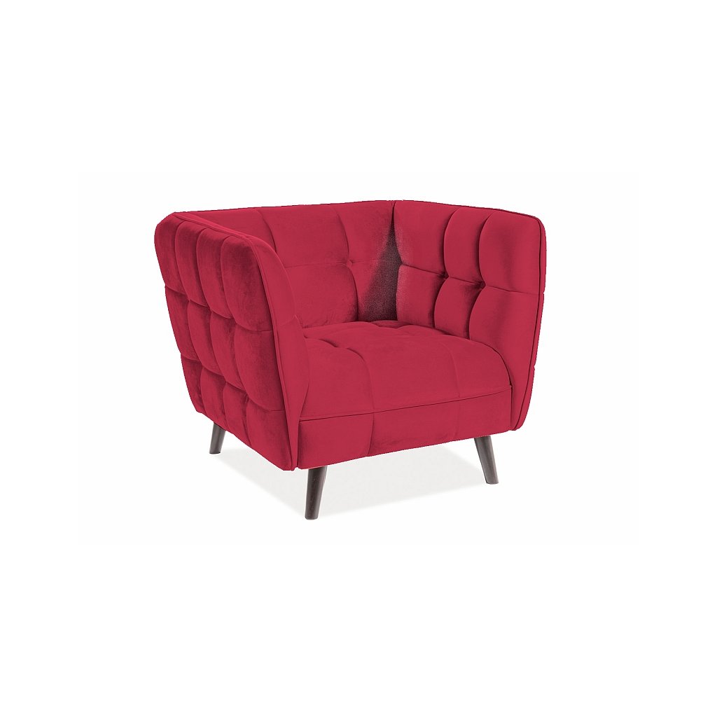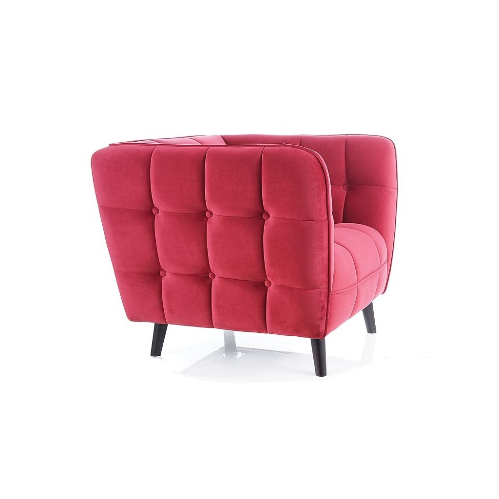 A temperamentumos Castello 1 bársony karosszék kiváló minőségű bársony anyagból készült, népszerű, játékos színváltozatokban. A lábak wenge színű fából készültek. A karosszék steppelt és luxus megjelenésű.
