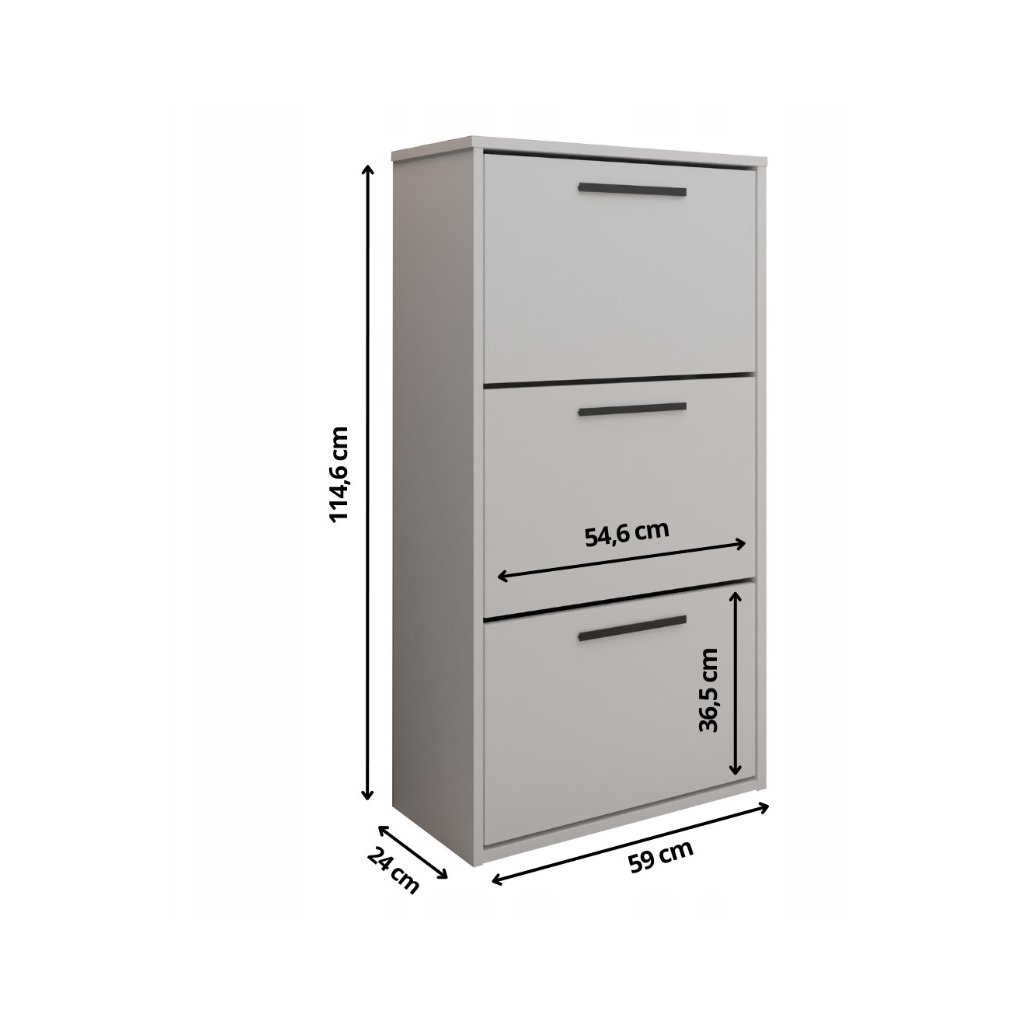 A LARO cipősszekrény a modern dizájnt a praktikummal és a tartóssággal ötvözi. Kiváló minőségű laminált bútorlapból készült, amelyet hosszú élettartam jellemez. Karbantartása egyszerű - csak törölje át a felületeket egy nedves ruhával, vagy használjon megfelelő, bútorokhoz való tisztítószert.