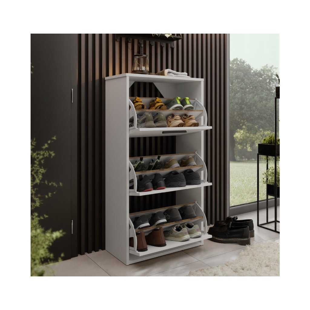 A LARO cipősszekrény a modern dizájnt a praktikummal és a tartóssággal ötvözi. Kiváló minőségű laminált bútorlapból készült, amelyet hosszú élettartam jellemez. Karbantartása egyszerű - csak törölje át a felületeket egy nedves ruhával, vagy használjon megfelelő, bútorokhoz való tisztítószert.