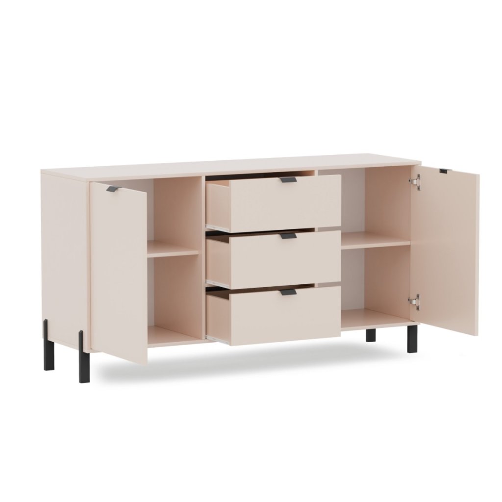 A CREMONA 2D3S fiókos szekrény ...- ból készült. Világos színű, kasmír árnyalatú dizájn , amely kellemes hangulatot teremt . A fiókos szekrényt elegáns fekete fogantyúk és magas lábak egészítik ki , egyedi stílust kölcsönözve a bútornak . Egy természetes, hangulatos és békés, pihenést elősegítő belső tér megteremtéséhez a kasmír bútorok az ideális választás .