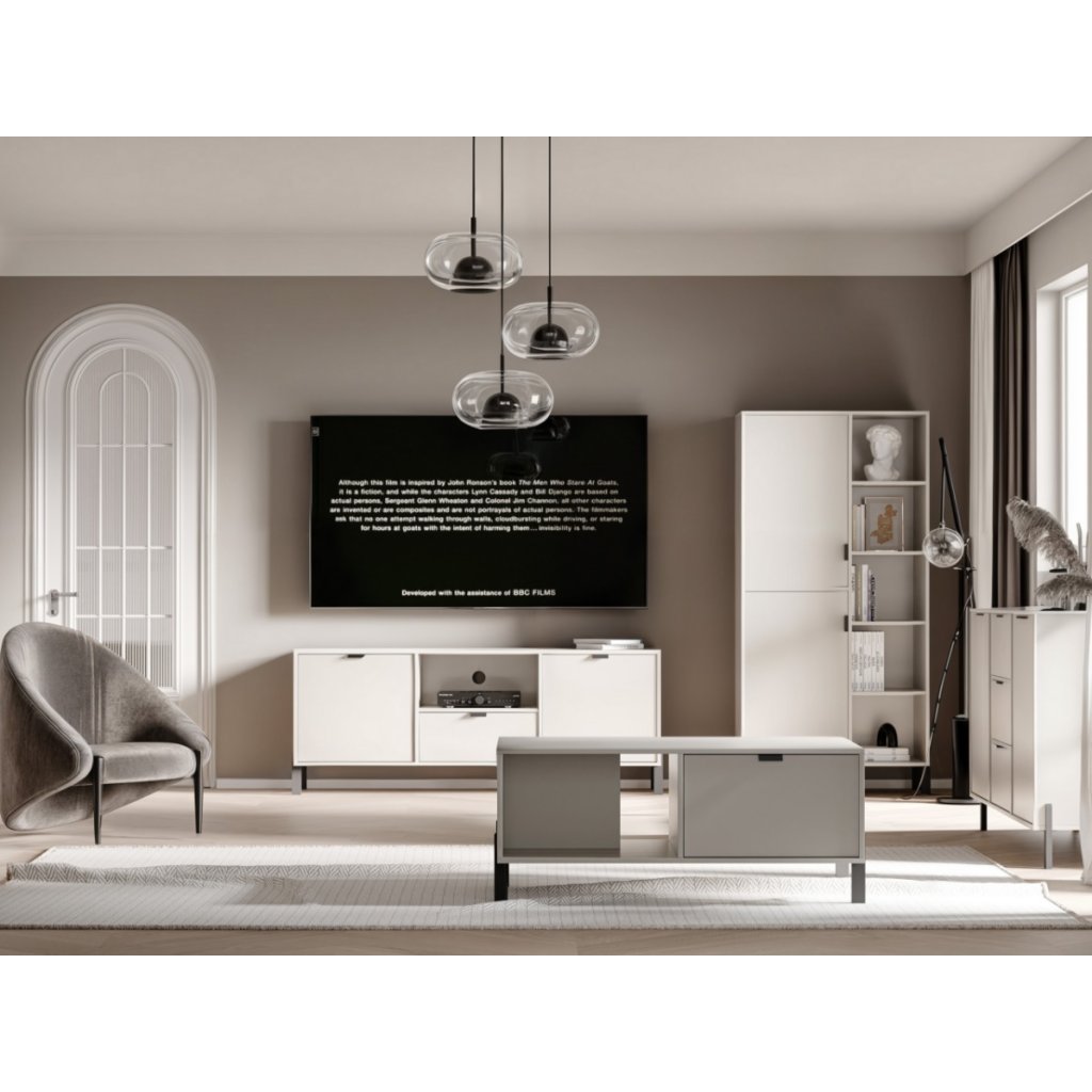 A CREMONA nappali fala kiváló minőségű laminált anyagokból készült. Az eredeti fogantyúk erősek és tartósak. A bútor stílusát magas lábak teszik teljessé, amelyek robotporszívónak is alkalmasak. A bútorok rendkívüli könnyen karbantartható – elég neki törölje nedves rongy- vagy bútortisztító.