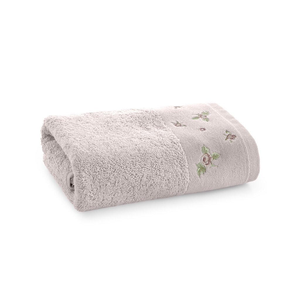Pamut fürdőlepedő velúr szegéllyel és virágos hímzéssel, szélesség: 70 cm, hosszúság: 140 cm, szín: rózsaszín, súly: 500 GSM, összetétel: Anyag: 100% pamut