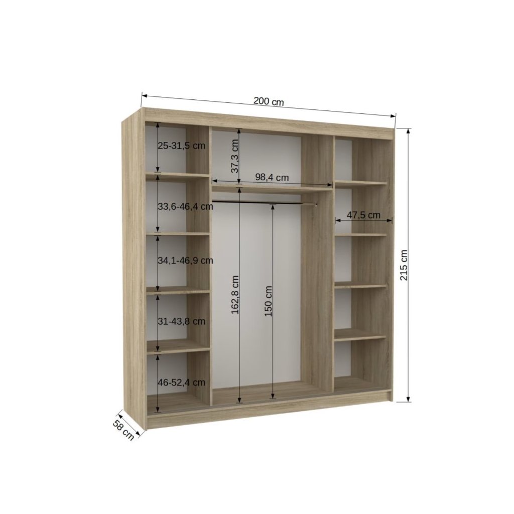 A gardróbszekrények otthonod nagyon fontos részét képezik, mivel nemcsak megjelenésükben, hanem a tágasságukban is meghatározóak, ami kulcsfontosságú a gardróbszekrények esetében. A DALMATIA 200 tolóajtós gardróbszekrény számos polccal és ruhaakasztó rúddal rendelkezik. A tolóajtók ideális választás kisebb helyiségekbe. A polcok cipőktől könyvekig különféle dolgok rendszerezésére alkalmasak, ami segít rendben tartani otthonodat. Fektess be egy praktikus és stílusos tárolási megoldásba otthonodba gardróbszekrényünkkel.