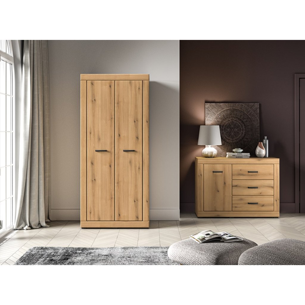 A DARIA kollekció azoknak készült, akik stílusos nappalit keresnek egy csipetnyi eleganciával és kényelemmel . A DARIA 01 gardrób finoman lekerekített szettai, a natúr Evoke Oak dekor és a diszkrét fekete részletek harmonikus egészet alkotnak, amely egyszerre modern és otthonos. A kiváló minőségű kidolgozás és az átgondolt részletek kombinációja nemcsak szépséget, hanem kényelmet is visz a mindennapokba. A gardrób rengeteg tárolóhelyet kínál.