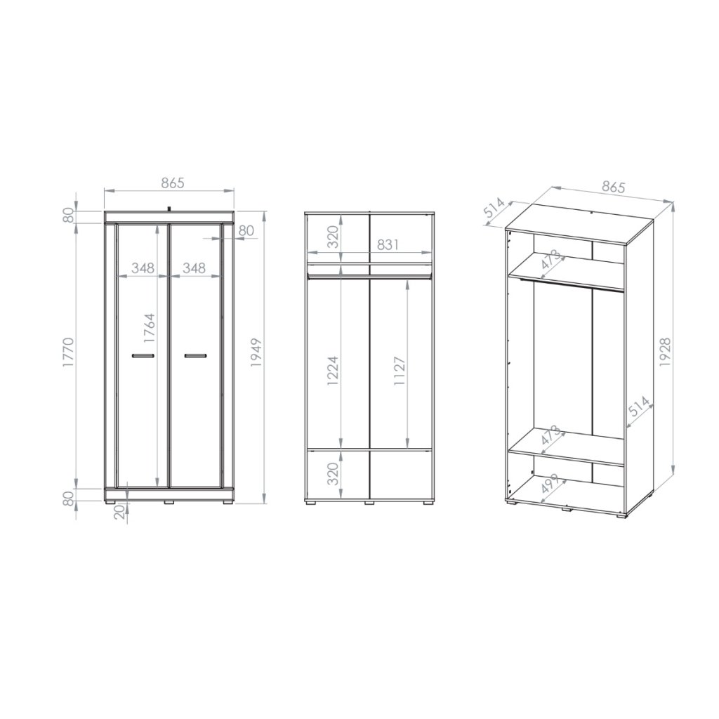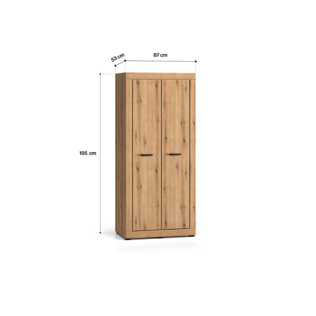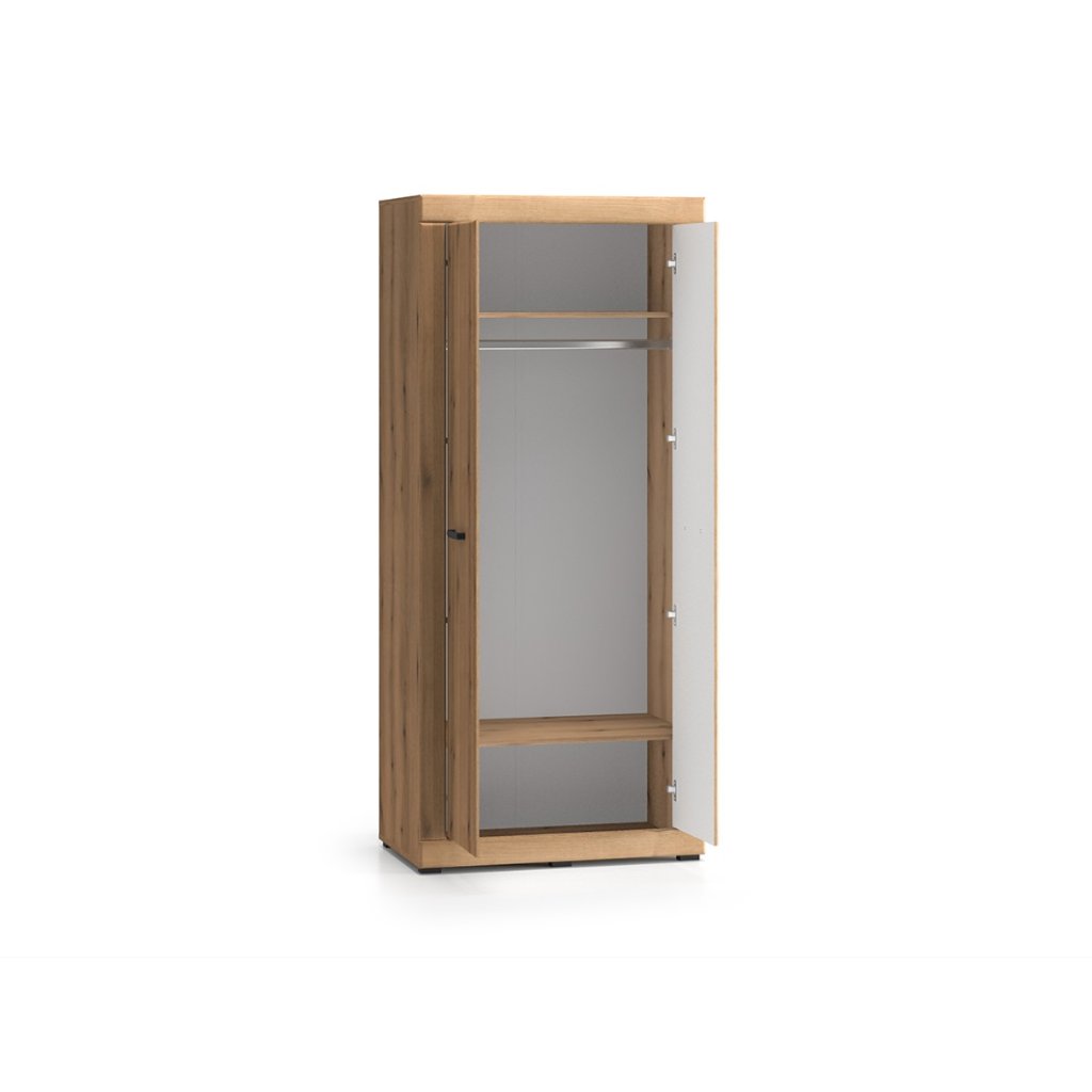 A DARIA ruhásszekrény kiváló minőségű anyagból készült, amely ellenáll a sérüléseknek, a nedvességnek és a magas hőmérsékletnek. Az ABS él nem hámlik és nem deformálódik. A műanyag fogantyúk ergonomikusak. A zsanérok lágyan záródó funkcióval rendelkeznek. Karbantartása egyszerű, csak törölje át a felületeket nedves ruhával vagy megfelelő bútortisztítóval.