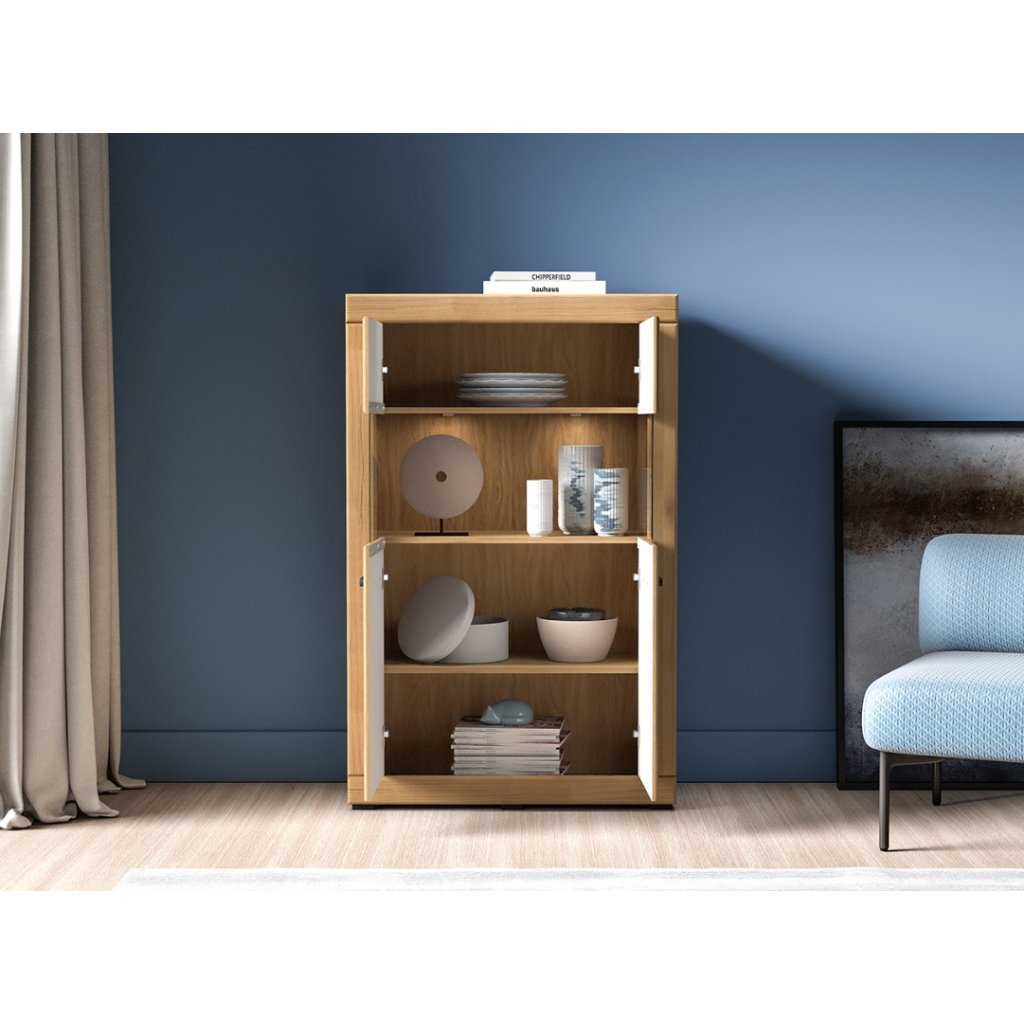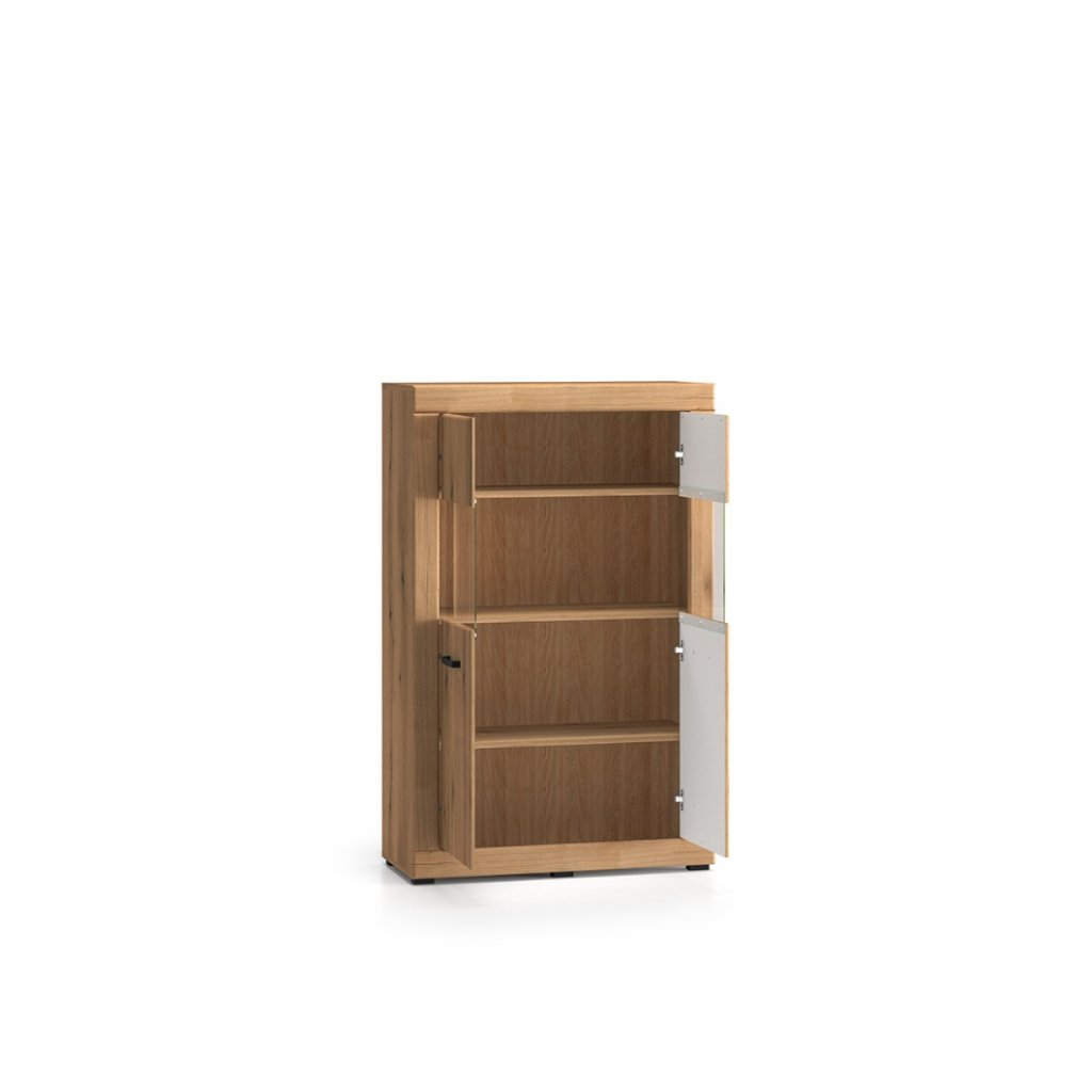 A DARIA kollekció azoknak készült, akik stílusos nappalit keresnek egy csipetnyi eleganciával és kényelemmel . A DARIA 03 vitrinek finoman lekerekített szettai, a natúr Evoke Oak dekor és a diszkrét fekete részletek harmonikus egészet alkotnak, amely egyszerre modern és otthonos. A kiváló minőségű kidolgozás és az átgondolt részletek kombinációja nemcsak szépséget, hanem kényelmet is visz a mindennapokba. A vitrinek rengeteg tárolóhelyet kínálnak, és LED világítás is rendelhető hozzá.