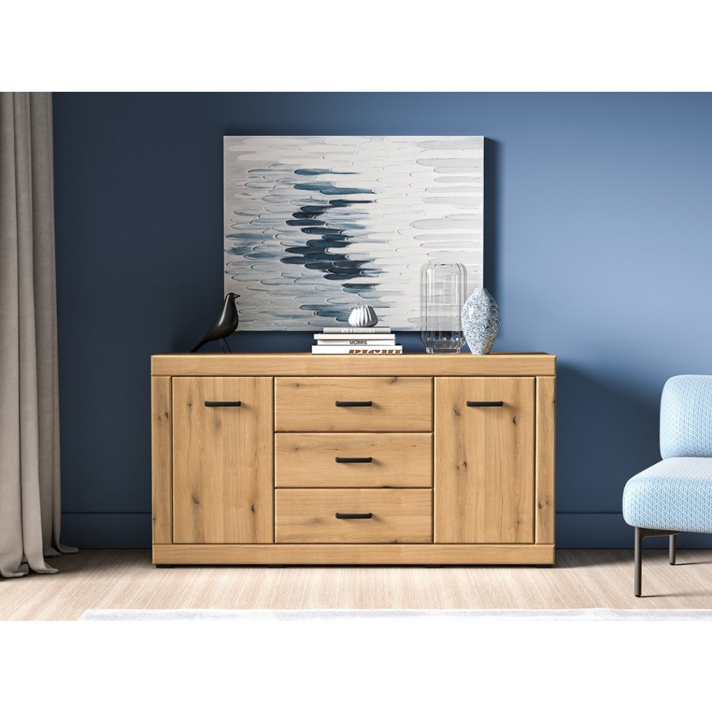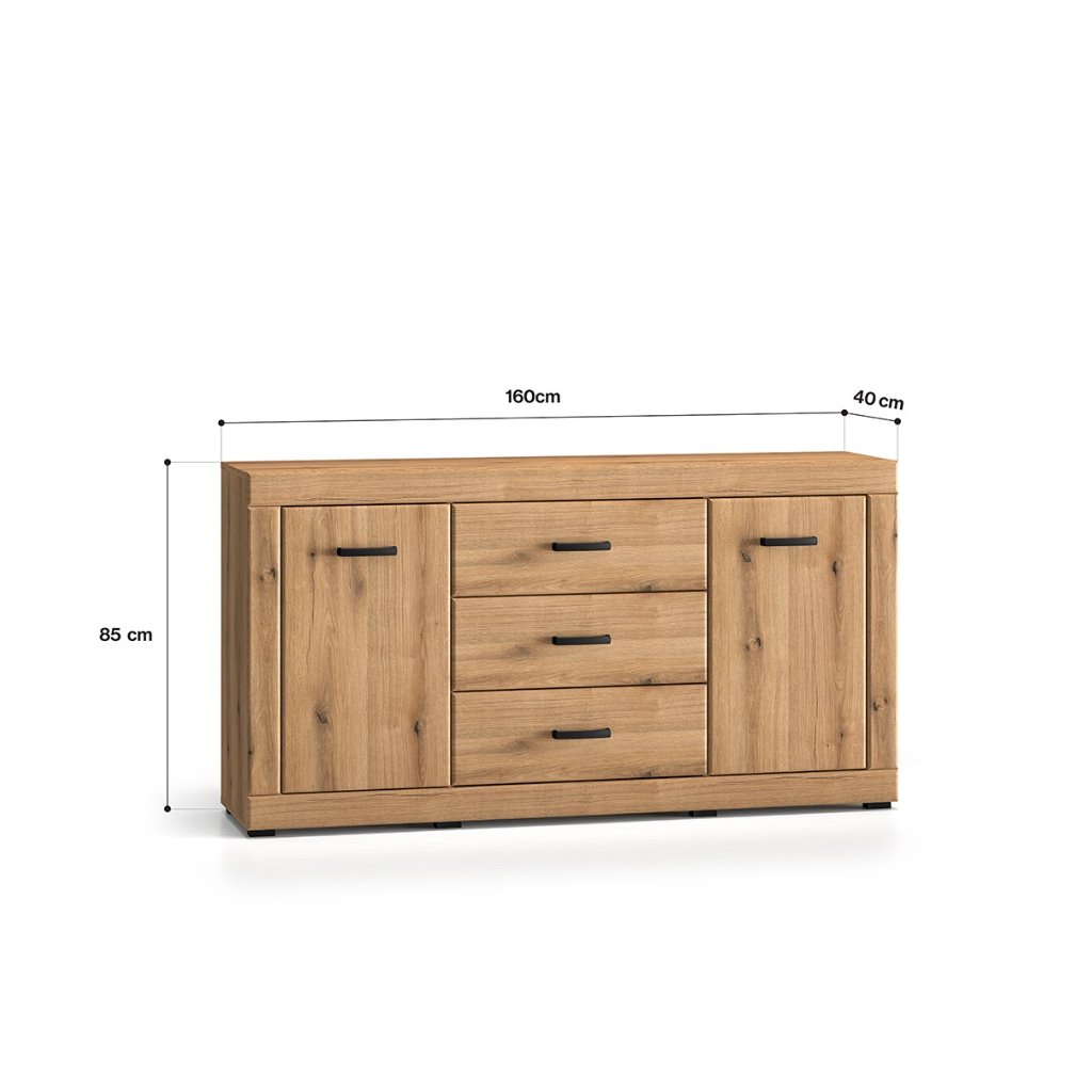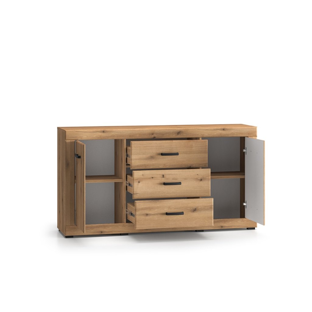 A DARIA kollekció azoknak készült, akik stílusos nappalit keresnek eleganciával és kényelemmel . A DARIA 04 fiókos szekrény finoman lekerekített szettai, a natúr Evoke Oak dekor és a diszkrét fekete részletek harmonikus egészet alkotnak, amely egyszerre modern és otthonos. A kiváló minőségű kidolgozás és az átgondolt részletek kombinációja nemcsak szépséget, hanem kényelmet is visz a mindennapokba. A fiókos szekrény három praktikus fiókkal és két szekrénnyel rendelkezik.