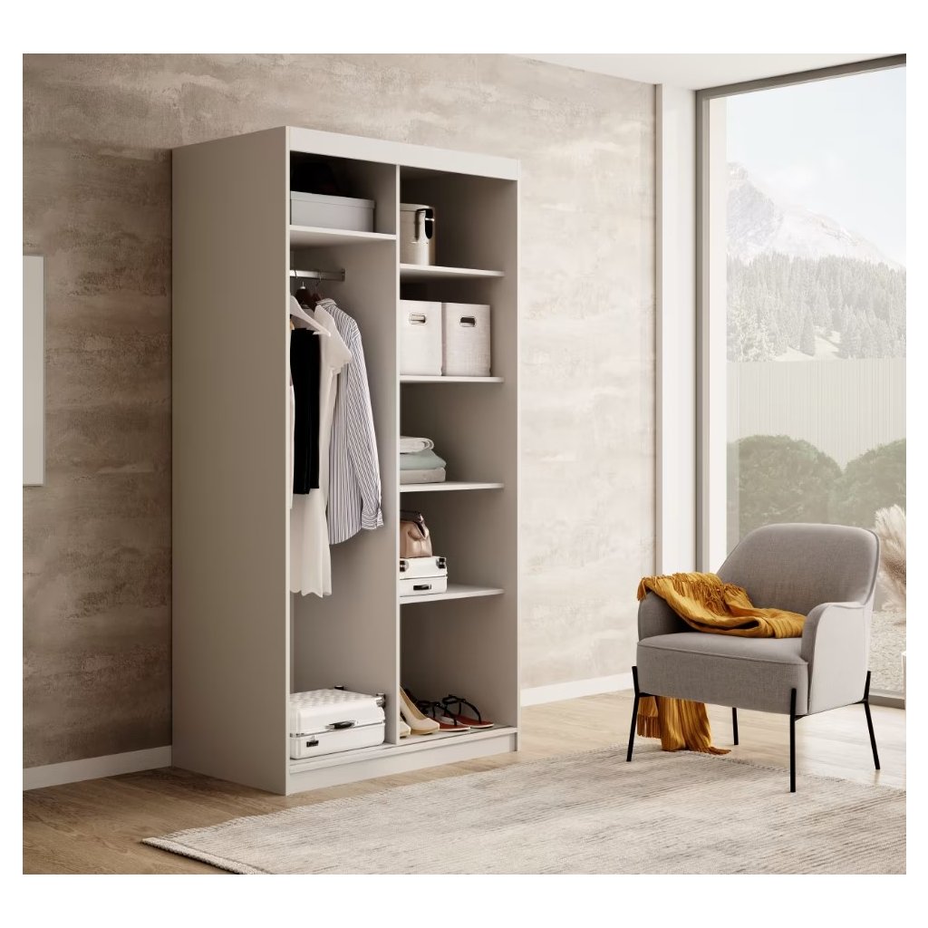 A DELIA ruhásszekrény | fehér/tölgyfa 100 cm-es, kiváló minőségű anyagokból készült, 16 mm vastagságú és 0,5 cm vastag ABS éllel kezelt. Ez a modern ruhásszekrény fogantyú nélküli tolóajtós rendszerrel van felszerelve - az egyik ajtó tükörrel, míg a másik stílusos , 2 mm vastag lécekkel díszített. Az alumínium vezetősínek és a BIMAK tolóajtó rendszer biztosítja a sima működést . Szétszerelt állapotban szállítjuk, minden szükséges alkatrésszel és összeszerelési útmutatóval. Karbantartása egyszerű - csak nedves ruhát vagy bútortisztítót használjon.