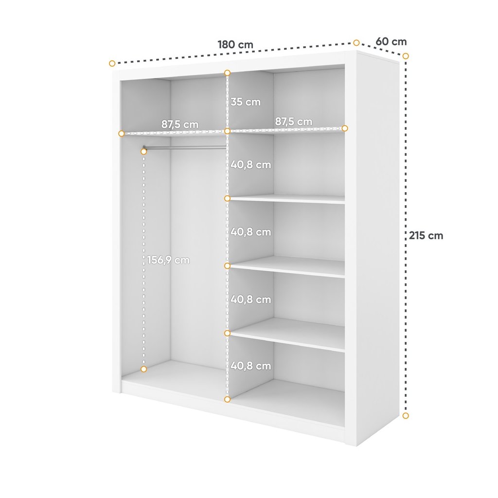 A DELILA szektorbútor egy finom és elegáns hálószobabútor , amely több színváltozatban kapható. A keretezésnek köszönhetően a bútor masszívnak tűnik, a fogantyúk fémből készültek, modern megjelenést kölcsönözve a bútornak. Kellemesen és kényelmesen fogja érezni magát a hálószobában, zavartalan alvást élvezhet. A szekrényekben és komódokban rengeteg tárolóhely található, így többé nem lesz problémája a ruhák tárolásával. Ha tökéletes hálószobát szeretne, állítsa össze DELILA szektorbútorból. A DELILA ID-02 szekrény tolóajtós, középső részében tükör található. A szekrény belseje polcokból és ruhaakasztó rúdból áll. A szekrényhez rendelhető az ID-13 belső fiókos szekrény , amely kiválóan alkalmas fehérnemű tárolására.