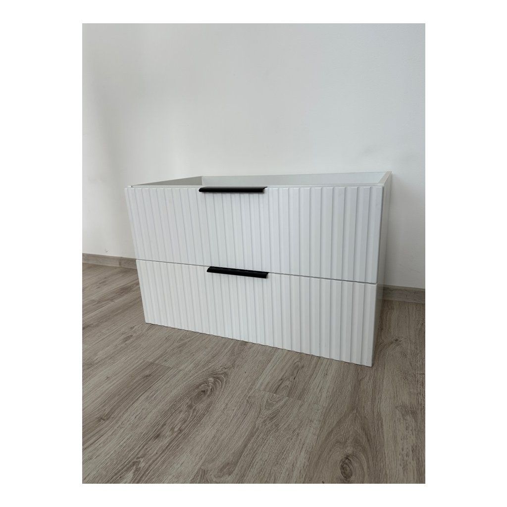A DELA mosdószekrény modern fehér színű , és világos, friss megjelenést kölcsönöz fürdőszobájának . A mosdószekrény két tágas fiókkal rendelkezik. A minimalista dizájnt függőlegesen barázdált előlapok élénkítik , amelyek modernek és kívánatosak.