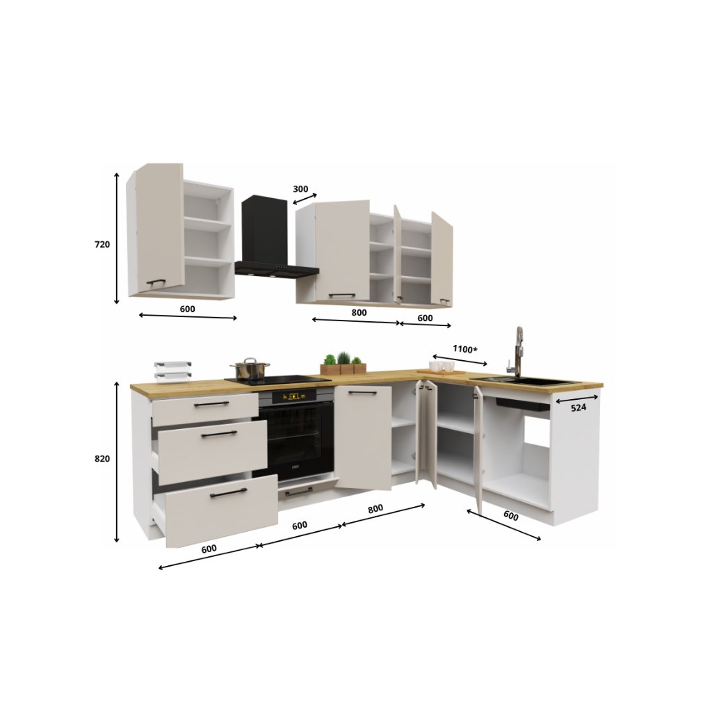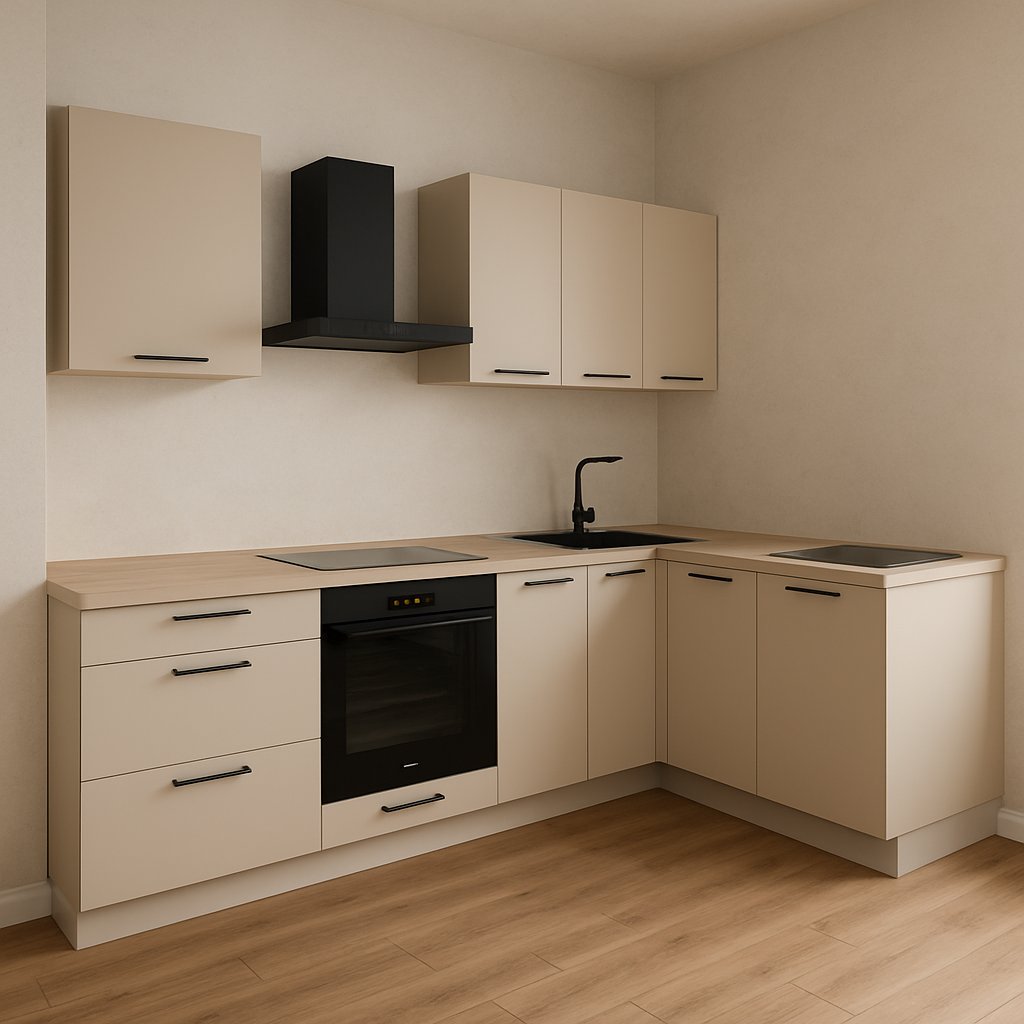 Konyhája felújítását vagy új berendezését tervezi? A modern DENIS konyhabútor ideális megoldás mindazok számára, akik az elegáns dizájn, a magas funkcionalitás és a minőségi kidolgozás kombinációját keresik. Ez a modell letisztult szettaival, időtlen bézs szekrényszínével és kontrasztos fekete fogantyúival nyűgöz le, amelyek modern jelleget kölcsönöznek a konyhának. A konyhabútor optimálisan kihasználja a sarkot, ugyanakkor kényelmes hozzáférést biztosít minden zónához - a főzéshez, a mosáshoz és a tároláshoz. A felső és az alsó szekrények rengeteg tárolóhelyet kínálnak, a munkalap nem része a szettnek. Ha egy praktikus és dizájnos konyhát keres, amely ötvözi a stílust, az ergonómiát és a tartósságot , a DENIS a tökéletes választás.
