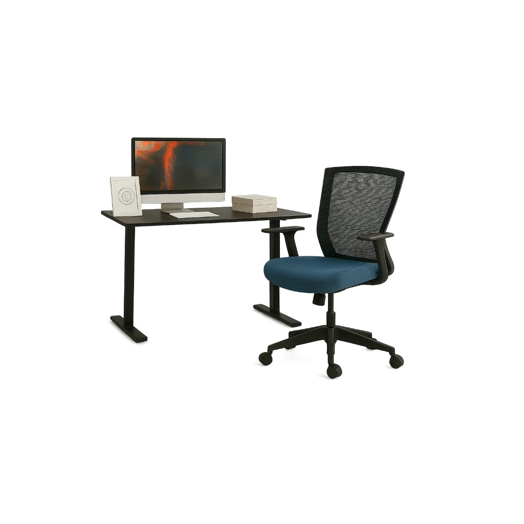 A modern MIKAEL irodai szett, amely egy elektromosan állítható fekete íróasztalból és egy ergonomikus, hálós háttámlájú irodai székből áll, ideális megoldás az egészséges és kényelmes ülő- és állómunkához. A minimalista dizájn és a divatos fekete szín kombinációja bármilyen modern irodába vagy otthoni irodába illik. A MIKAEL szett ötvözi a funkcionalitást, a kényelmet és a dizájnt , aminek köszönhetően javítja a munkavégzési szokásokat és támogatja az egészségesebb ülést.