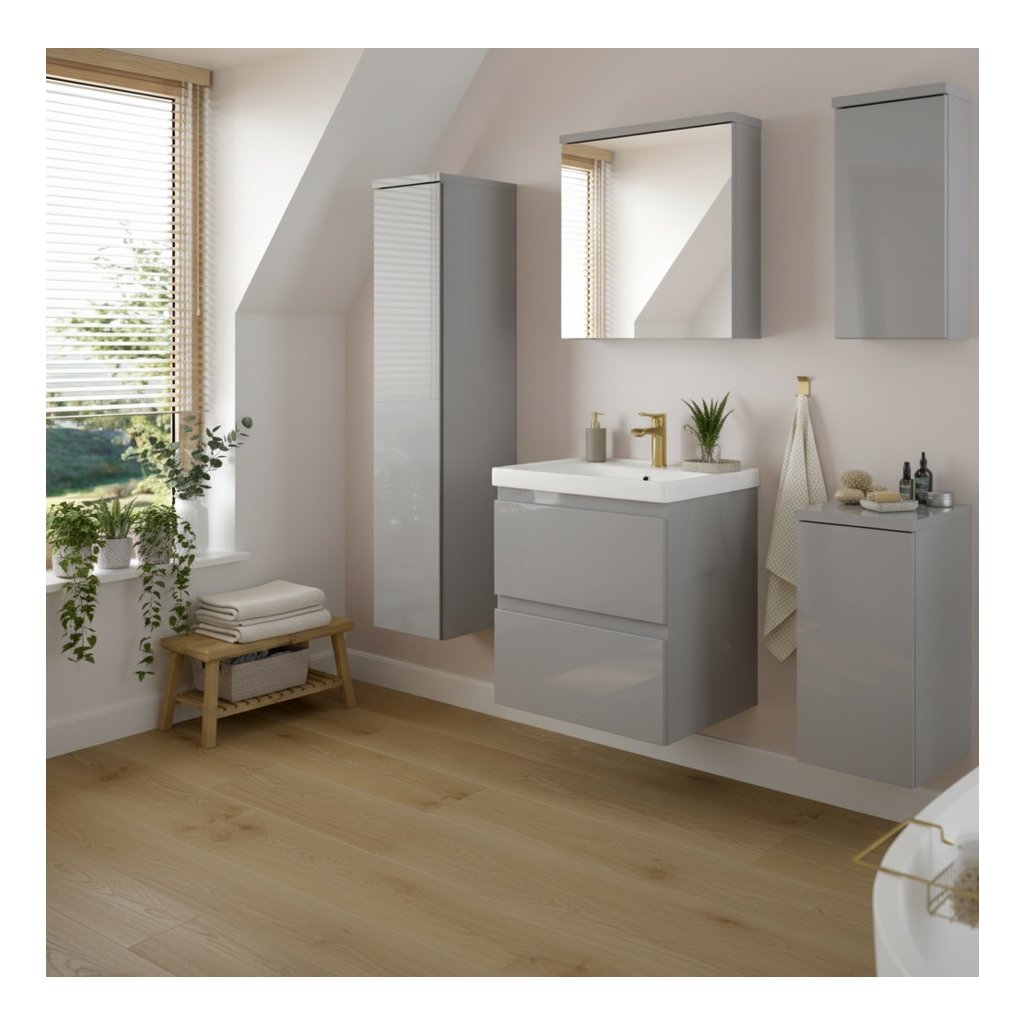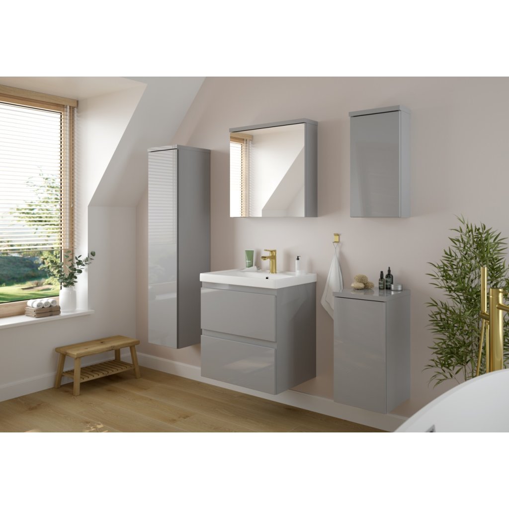 A stílusos DIAMENTE 60/1 fürdőszoba szett a modern dizájnt és a praktikus megoldásokat ötvözi. A fényes szürke felület gyönyörűen visszaveri a fényt, vizuálisan nagyobbá téve a teret és exkluzív jelleget kölcsönözve neki. Ez a luxus fürdőszoba szett bőséges tárolóhelyet kínál minden fürdőszobai kelléknek. Válassza ki az ideális fürdőszoba szettet, és alakítsa át fürdőszobáját elegáns és időtlen térré !