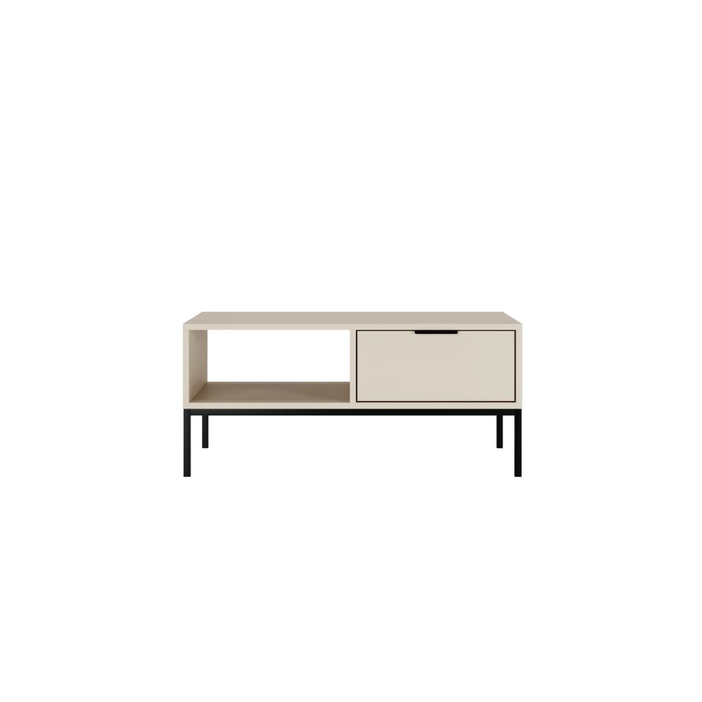 Tegyen egy csipetnyi eleganciát otthonába az AUSTIN 100 dohányzóasztallal, modern kasmír felülettel és fekete kiegészítők kombinációjával . Ez a stílusos darab a letisztult minimalista dizájnt ötvözi a magas szintű funkcionalitással, így ideális kiegészítője lehet bármely otthonnak. A dohányzóasztal két tágas fiókkal és egy nyitott polccal rendelkezik, amelyek rengeteg helyet biztosítanak ruhák, kiegészítők vagy egyéb szükséges dolgok számára. A fiókok klasszikus sínekkel vannak felszerelve, lágyan záródó rendszer nélkül.