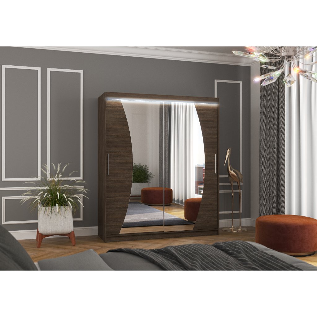 A gardróbszekrények otthonod nagyon fontos részét képezik. A gardróbszekrények nemcsak megjelenésükben, hanem a tágasságukban is dominálnak, ami kulcsfontosságú a gardróbok esetében. Egyedi kialakításának és ízléses színvilágának köszönhetően a DOLORES gardróbszekrény bármilyen hálószobát vagy előszobát otthonossá varázsol. A DOLORES gardróbszekrény négy színváltozatban kapható: fehér, fekete, csokoládé és sonoma. Lehetőség van 15 színű LED világítás rendelésére távirányítóval.