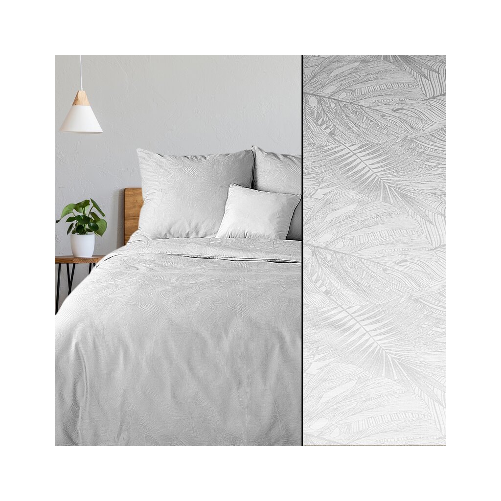 Pamut ágyneműgarnitúra - damaszt jacquard mintával, szélesség: 160 cm, hosszúság: 200 cm, szín: fehér, súly: 120 GSM, összetétel: damaszt, 100% pamut. A csomag tartalma 1 db 160 x 200 cm, 2 db 70 x 80 cm.