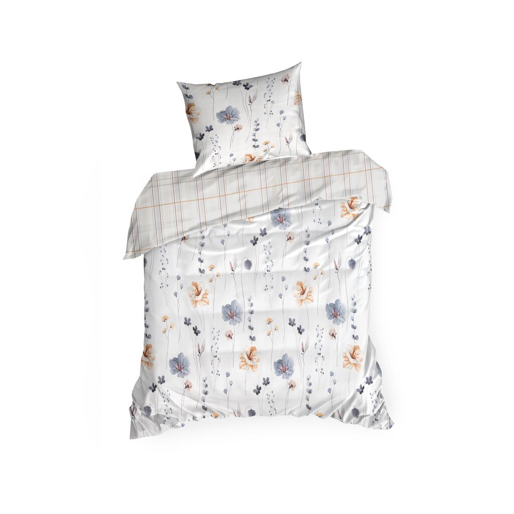Kétoldalas nyomott ágyneműgarnitúra, szatén szövés szélessége: 160 cm, hossza: 200 cm, színe: fehér, súlya: 125 GSM, összetétele: 55% pamut, 45% poliészter. A csomag tartalma 1 db 160 x 200 cm, 2 db 70 x 80 cm.