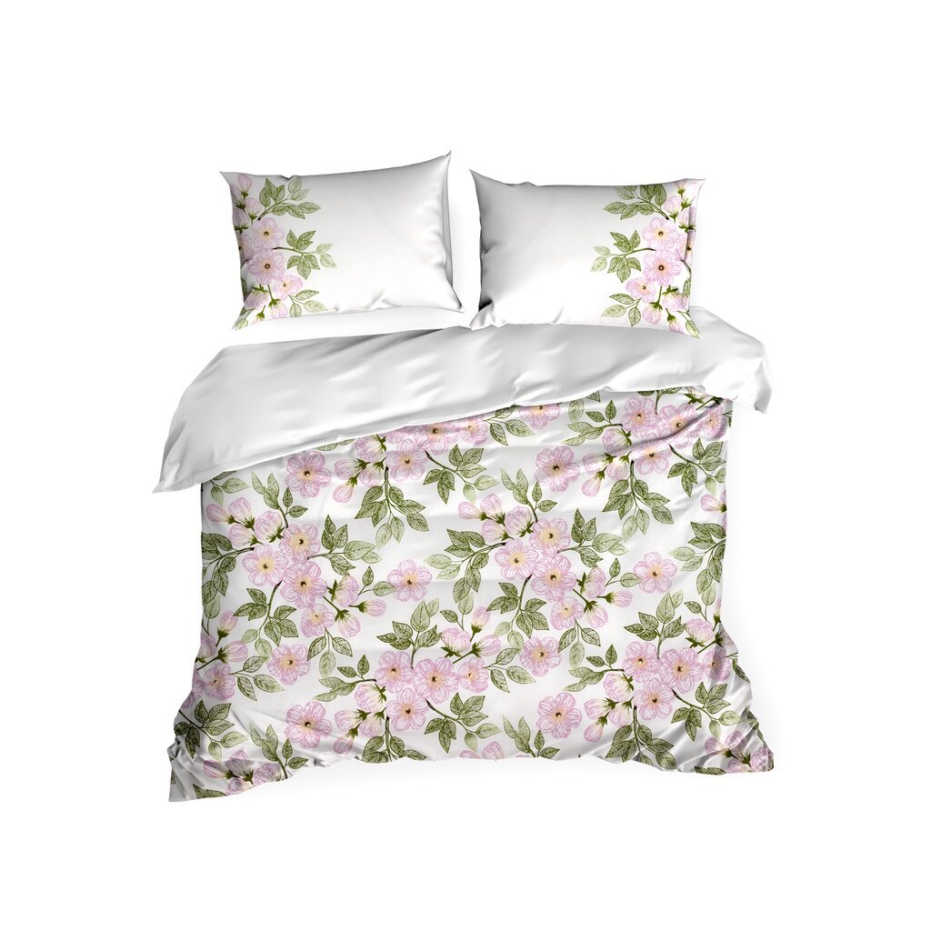 Nyomtatott pamut szatén ágyneműgarnitúra Szélesség: 220 cm, Hossz: 200 cm, Szín: fehér, Súly: 125 GSM, Összetétel: szatén, 100% pamut. A csomag tartalma 1 db 220 x 200 cm, 2 db 70 x 80 cm.